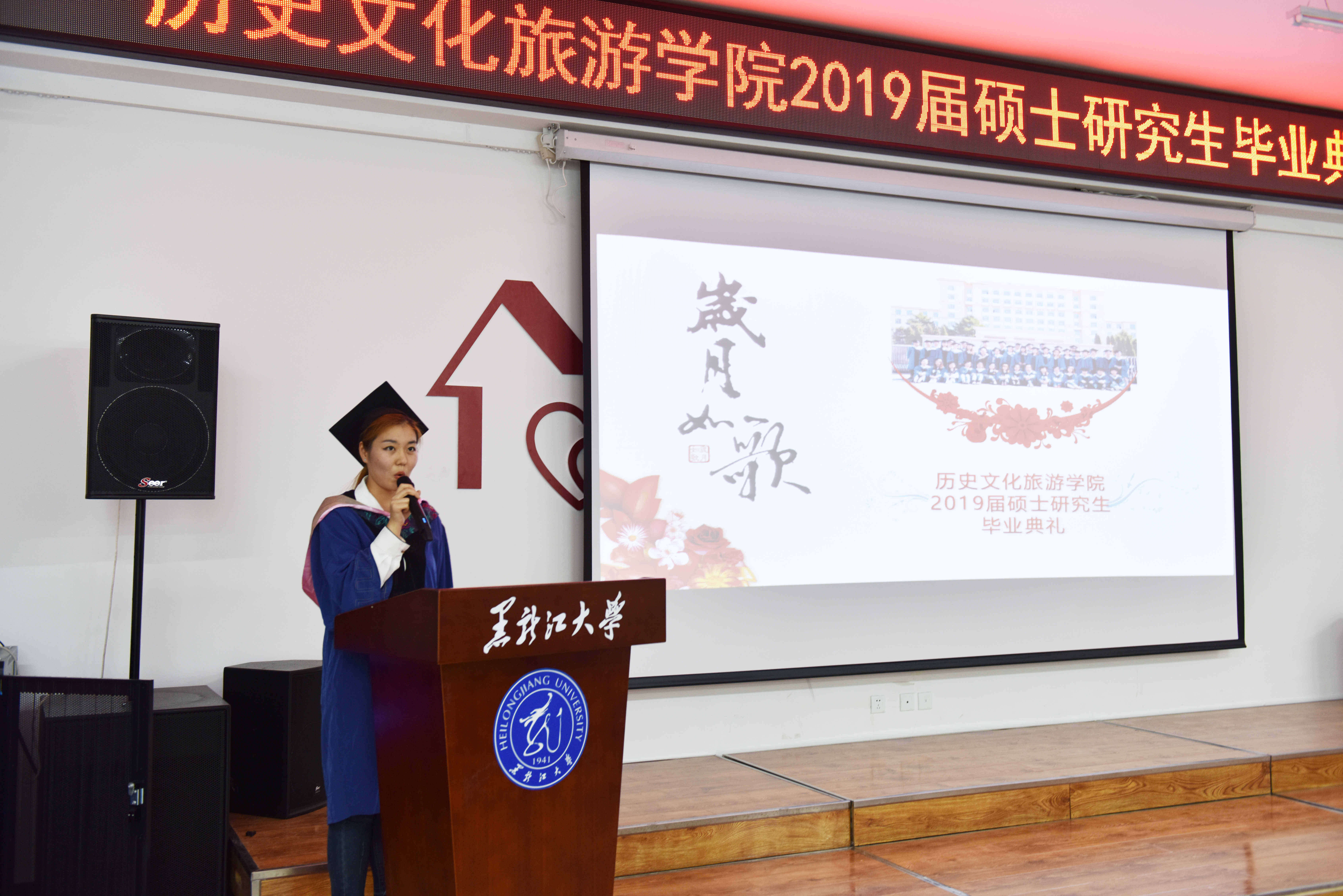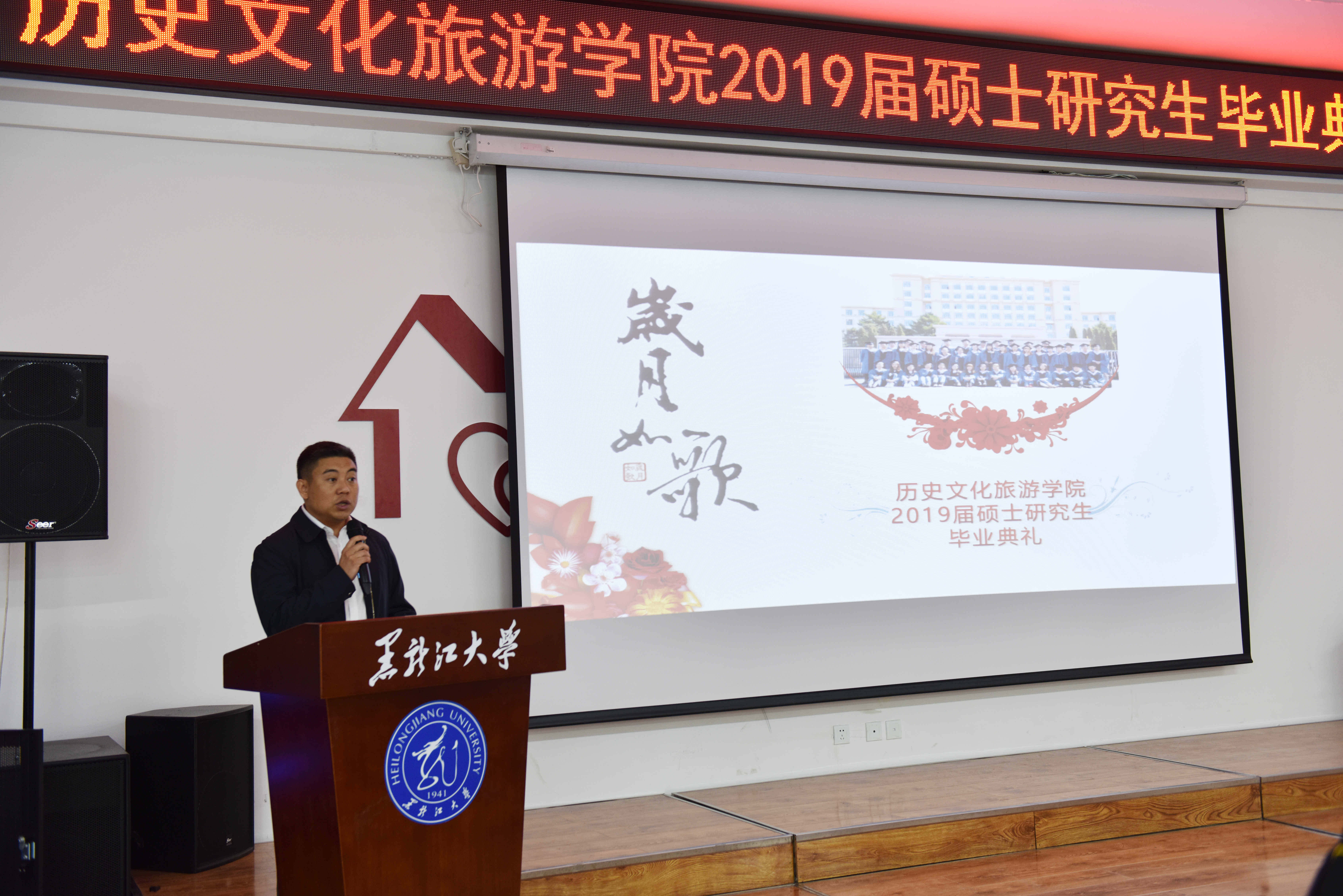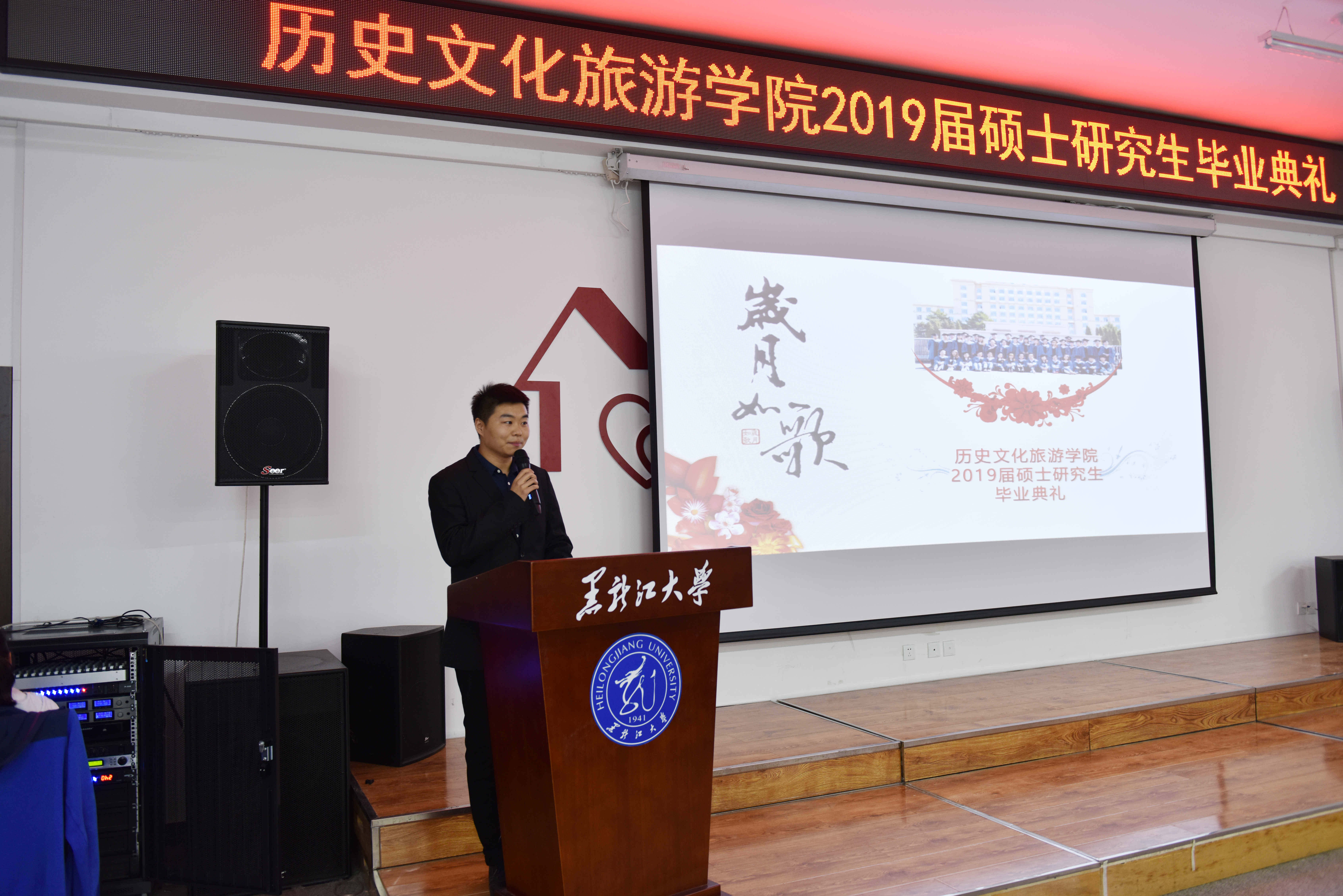 历史文化旅游学院2019届硕士研究生毕业典礼于2019年5月27日下午14时在黑龙江大学教职工活动中心隆重举行,历史文化旅游学院领导、硕士生导师、2019届硕士研究生及部分毕业生亲友参加了本次毕业典礼。研究生院副院长张龙老师、2019届硕士研究生辅导员綦明霞老师作为特邀嘉宾出席了典礼。