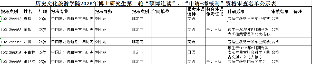 黑龙江大学历史文化旅游学院2026年博士研究生“硕博连读”“申请-考核制”招生资格审查工作已结束,根据有关要求,对审查通过名单予以公示。