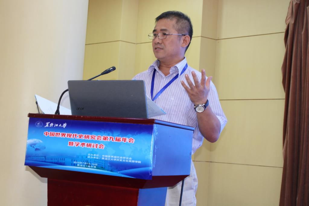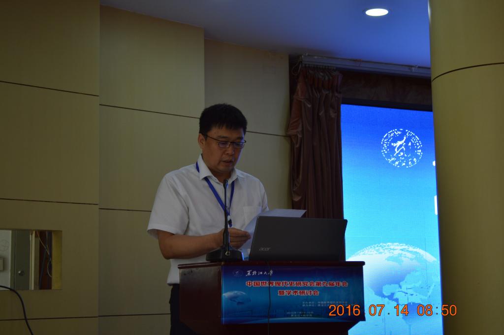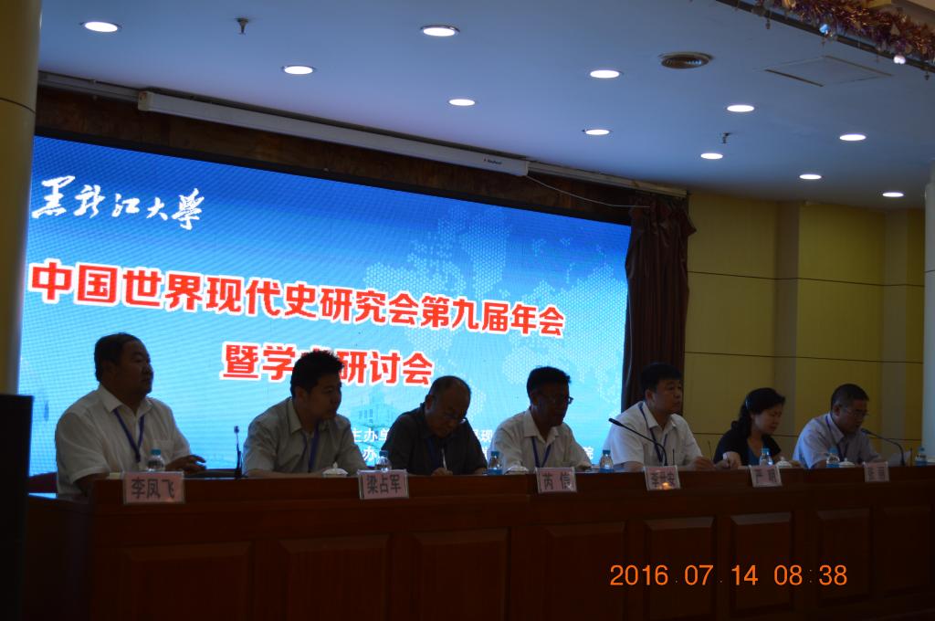 由中国世界现代史研究会主办、黑龙江大学历史文化旅游学院承办的“中国世界现代史研究会第九届年会暨学术研讨会”于2016年7月14-15日在哈尔滨市教育宾馆召开。来自中国社科院、北京大学、中国人民大学、北京师范大学、首都师范大学、华东师范大学、南开大学、武汉大学、西北大学、吉林大学、黑龙江大学、人民教育出版社、天津社会科学院及俄联邦萨哈林国立大学等80余所国内外高校、科研院所和出版机构的110余名专家学者和硕博研究生参加了此次盛会。本次大会共收到78篇参会论文,与会专家学者在会场畅所欲言,围绕大会主题所覆盖范围及各自专业方向展开广泛而深入的讨论,展现了国内世界现代史学术界的前沿动态。