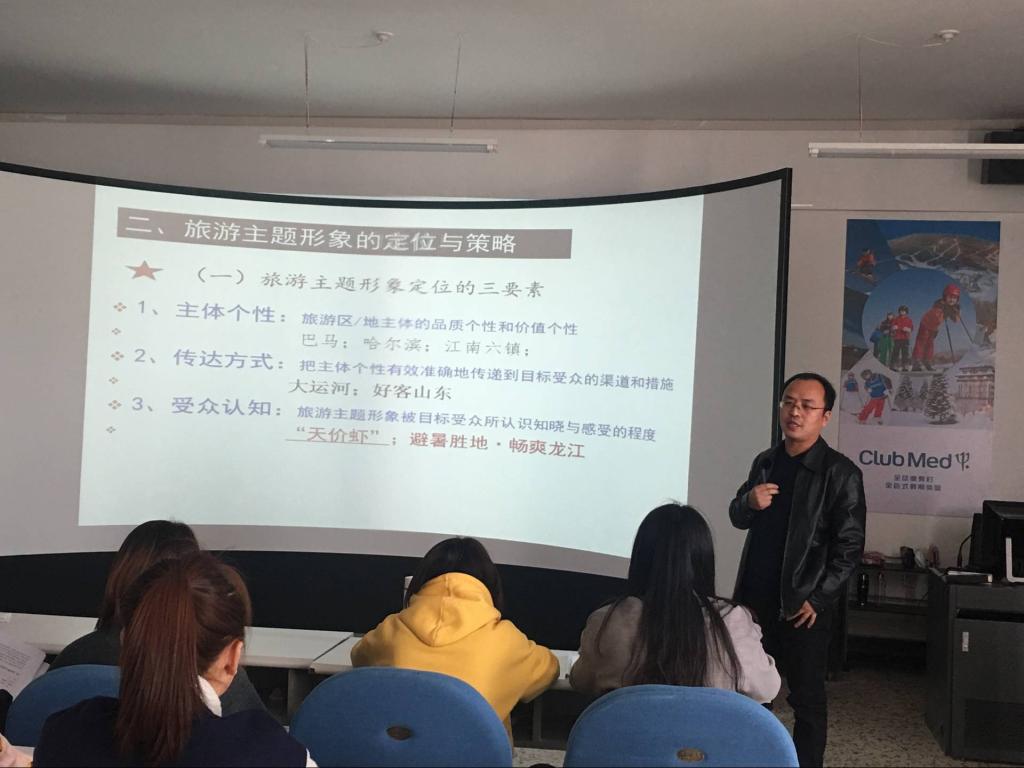 此次观摩课主讲教师为旅游管理专业青年教师王振,王老师获得过黑龙江大学第八轮教师本科教学工作优秀奖,他主讲的课程是“区域旅游资源规划与开发”。在授课中,王老师充分运用多媒体辅助教学,从主体个体、传达方式、受众认知三个角度分析旅游景区的规划及开发,同时通过案例教学为我们展示了“江南六镇”、“最美杭州”、“好客山东”、“冰城哈尔滨”等具有代表性的旅游景区规划。课程教学特色鲜明,具有较强吸引力,课堂氛围活跃,教学效果极佳。