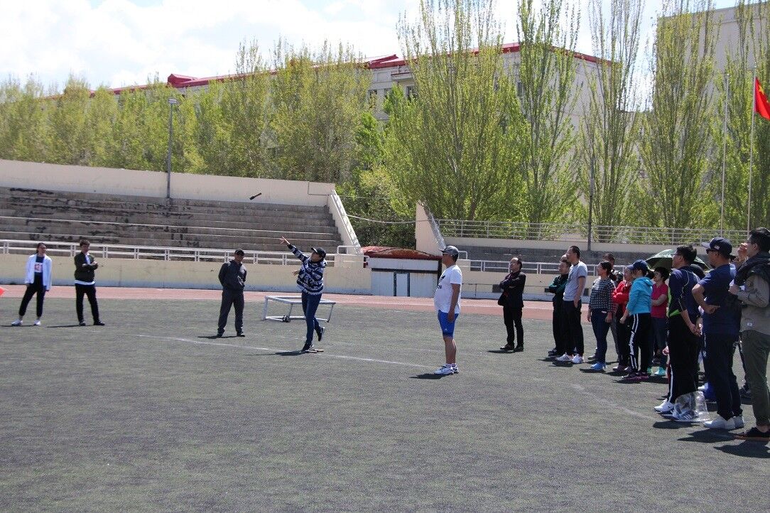 运动场的另一边,教工项目也在如火如荼地进行着,老师们都全身心投入到比赛中去。400米竞走是热身环节,手榴弹投准是小菜一碟,板鞋竞速、摸石头过河和一分钟踢毽子不仅考验了老师们的默契,增强了比赛的趣味性,还将老师们从日常工作中解脱出来,从运动中获得快乐,更让学生们看到了老师们与平日里不同的一面,拉进了师生之间的距离。
