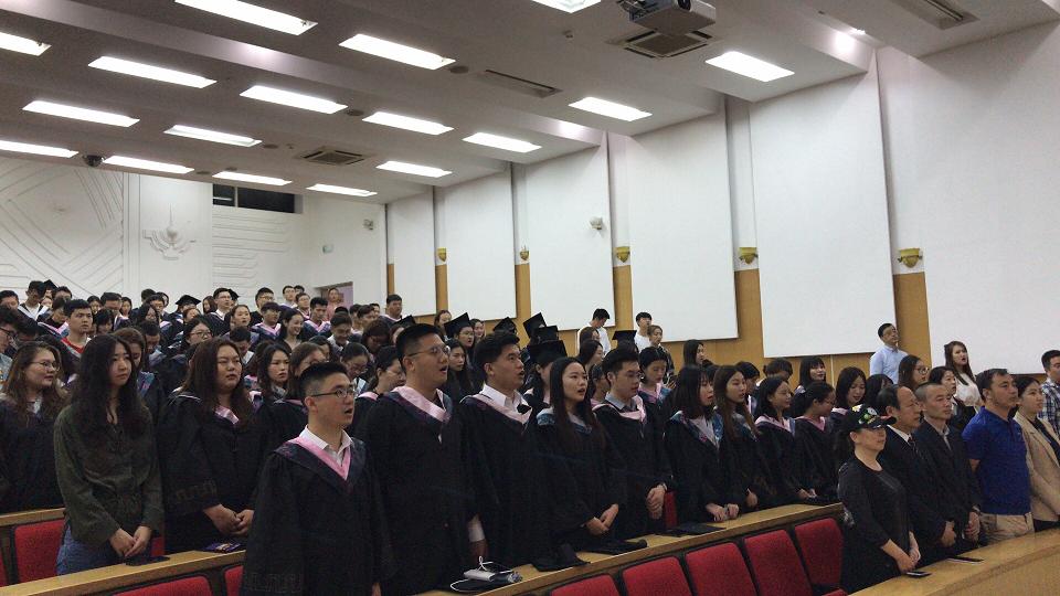 典礼开始前,播放了学院精心制作的毕业视频,再现了四年来同学们的生活点滴,传递了毕业生临别前的祝福话语。在庄严雄壮的国歌声中,毕业典礼正式拉开了序幕。奏唱国歌后,王乐文副院长宣读了《黑龙江大学历史文化旅游学院2018届毕业生学业报告》;孙美晖书记宣读了《黑龙江大学历史文化旅游学院2018届毕业生考取硕士研究生名单》,祝愿同学们在以后的学习、生活中一切顺利。