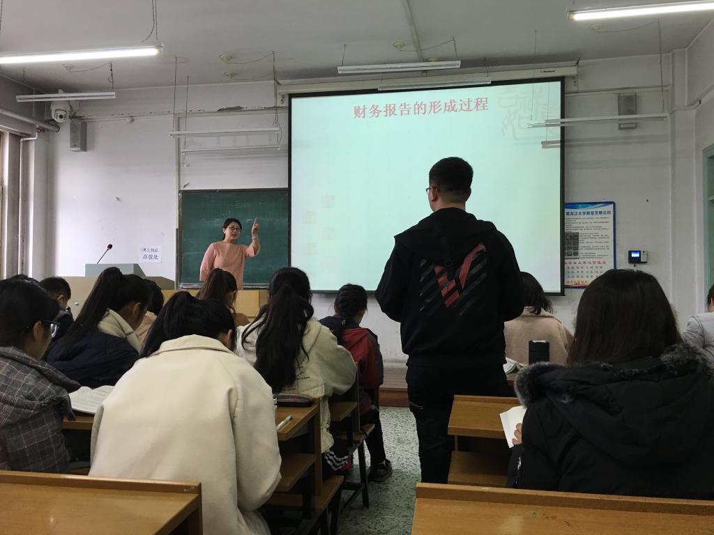 此次观摩课主讲教师为旅游管理专业青年教师赵欣,赵欣老师获得过黑龙江大学第十轮教师本科教学工作优秀奖,她主讲的课程是“会计学”。在授课中,赵欣老师以案例的形式引出对财务报告的介绍,并对财务报告的概念、组成、作用等进行了细致的讲解,尤其是对资产负债表、利润表、现金流量表之间的内在联系进行了分析。