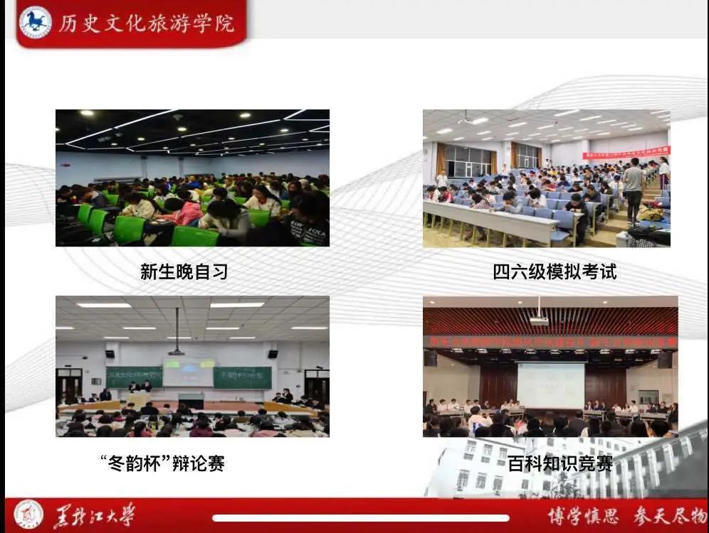 随后,辅导员赵鑫宇老师为家长们介绍了黑龙江大学的光辉历史、历史文化旅游学院的发展史和学生管理的具体要求,赵鑫宇老师从心理问题、学分学制、学籍异动、学业预警等几方面进行了讲解。从案例出发,细致入微,帮助家长了解了学校学生管理的措施和方法。最后赵鑫宇老师表示,学校学院培养学生的出发点和落脚点与家长是一致的,因此学校和家长应该紧密联系,积极合作,共同致力学生的健康成长,家长们表示赞同。