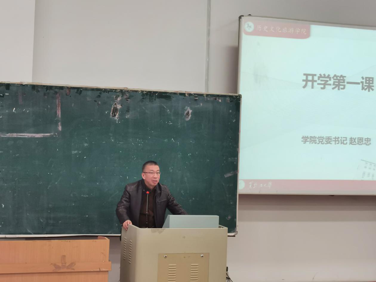 随后,学院党委书记赵恩忠老师为新生同学上“开学第一课”,赵老师围绕着“爱”的主题进行说明,他希望同学们在面对无私的爱时学会感恩,做到感恩他人,在面对社会的爱时学会回报,做到回报社会,在面对国家的爱时学会热爱,做到感恩祖国、回报祖国、热爱祖国;在历史学院大家庭中,要规划好自己的人生目标,把自我命运、国家命运和民族命运联系在一起,努力成为人生的赢家。