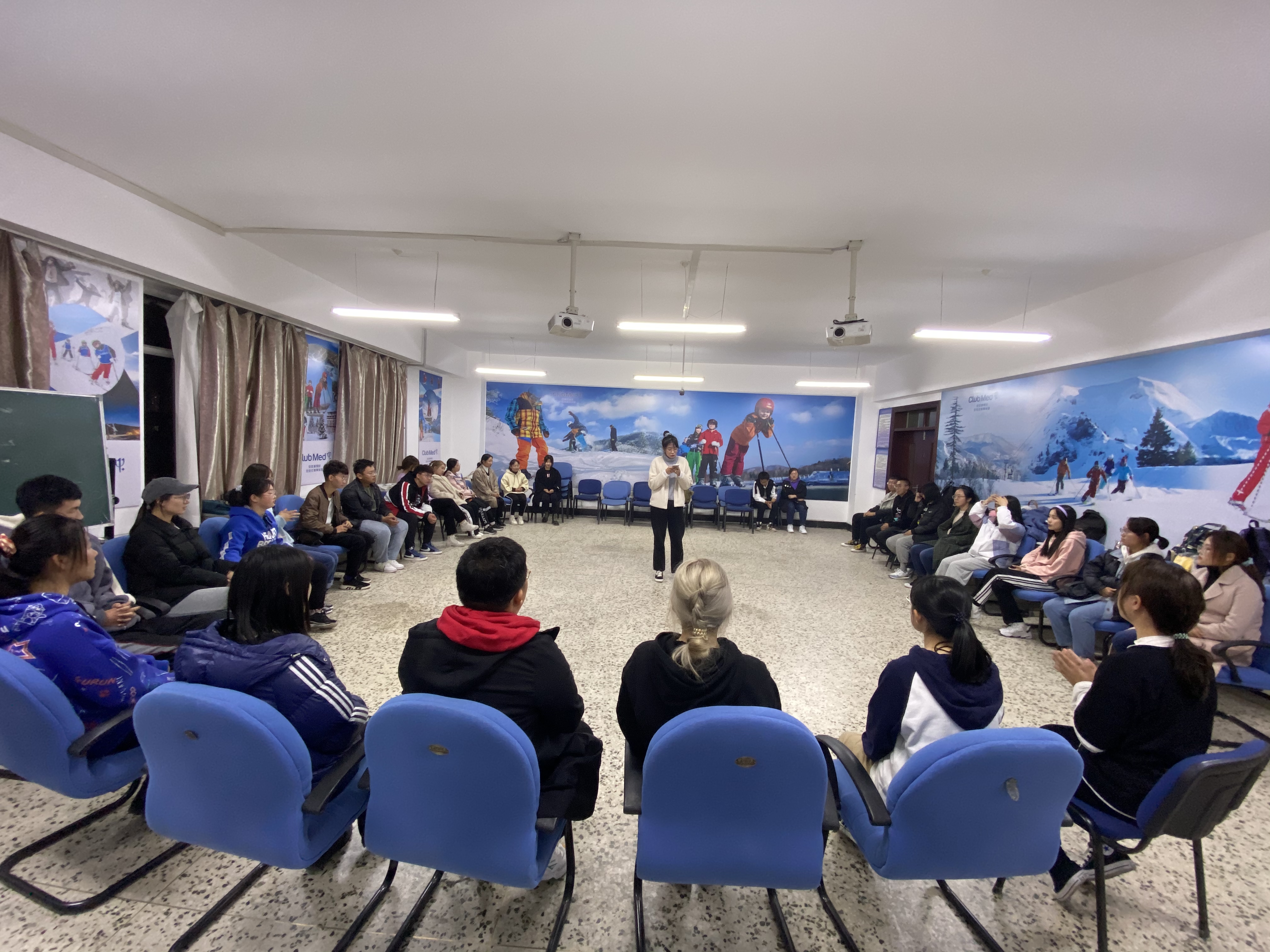 训练活动以“个性自我介绍”开始,同学们结合自己的兴趣爱好展开自我介绍,有的同学用民族语言介绍自己,有的同学为大家带来歌曲,各有特色。训练第二项是破冰活动“大风吹”,游戏紧张而欢快,同学们在游戏中逐步缓解了紧张的气氛,同学们的默契也逐渐增强。接下来,依次开展了“无声排队”、“平地而起”、“心有千千结”等团体游戏,游戏中同学们相互配合,分享感悟,气氛融洽,情绪热烈。