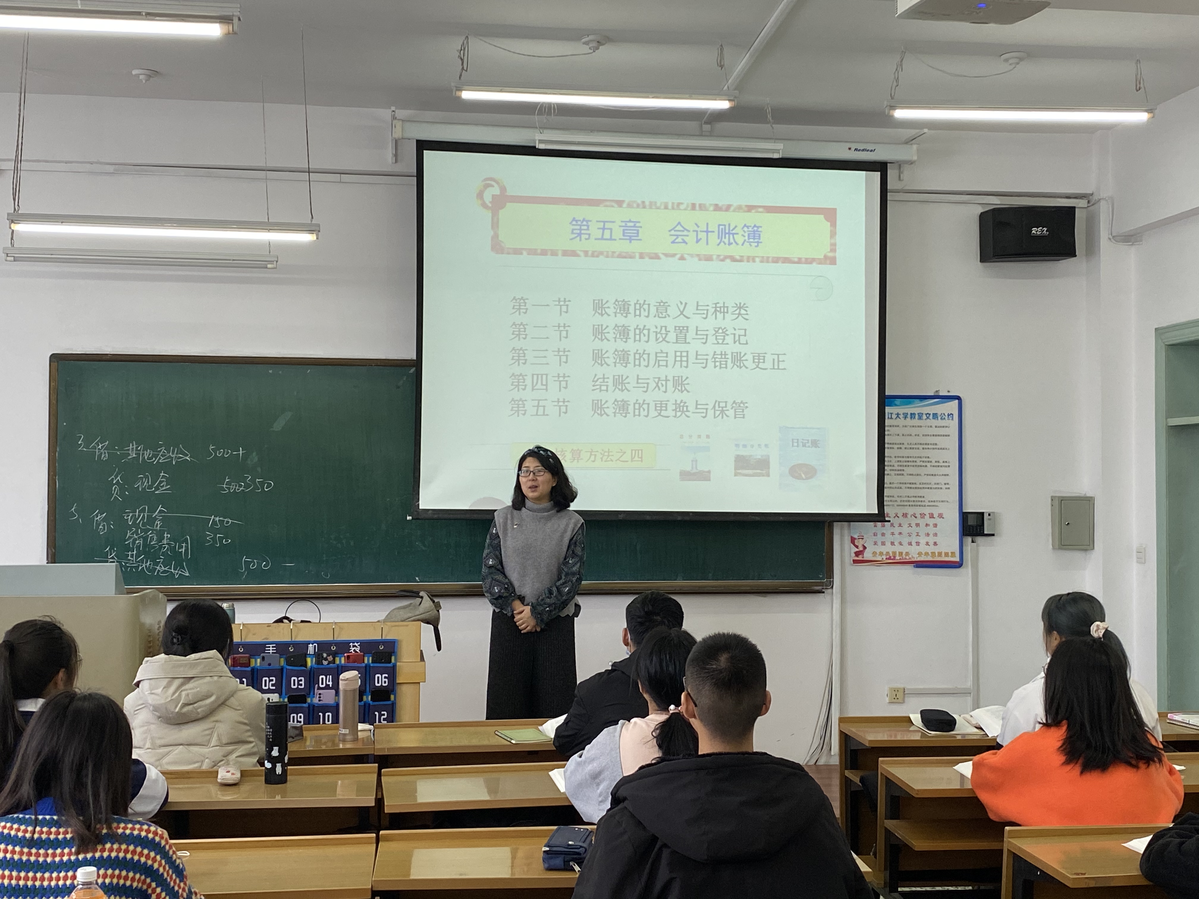 第一场观摩课由本科教学优秀奖获得者赵欣老师主讲。她讲授的是“《会计学》会计账簿的内容与编制”,赵老师分析了会计科目、账户及账簿三者的区别与联系,并从会计账簿的作用出发,说明会计账簿在账务处理中所发挥的承上启下的作用,赵欣老师坚持“以学生为中心教学理念”,授课内容熟练、语言精练、逻辑清晰,为优质教学观摩活动开了一个好头。