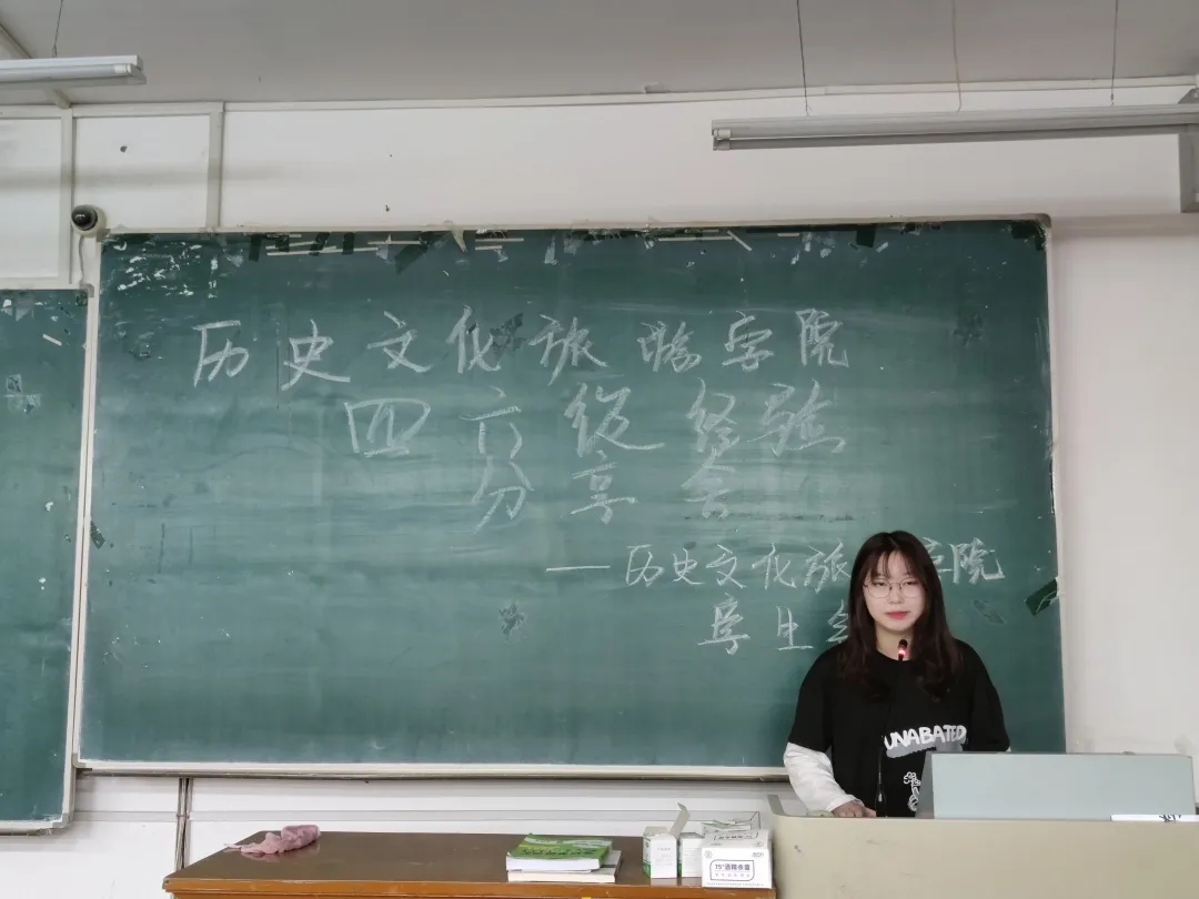 为进一步加强学院学风建设,发挥榜样引领作用,助力学生备战四六级考试,12月6日晚,历史文化旅游学院在汇文楼566教室举办“学长学姐论坛”之四六级经验分享会。本次分享会邀请到2018级考古班杨逸飞同学、2019级旅游管理3班王文希同学、2019级考古班陈静怡同学三位高分通过四六级考试的学姐担任分享人。分享会由文艺部干事刘显豪同学主持,学院2020级全体学生参加了此次分享会。
