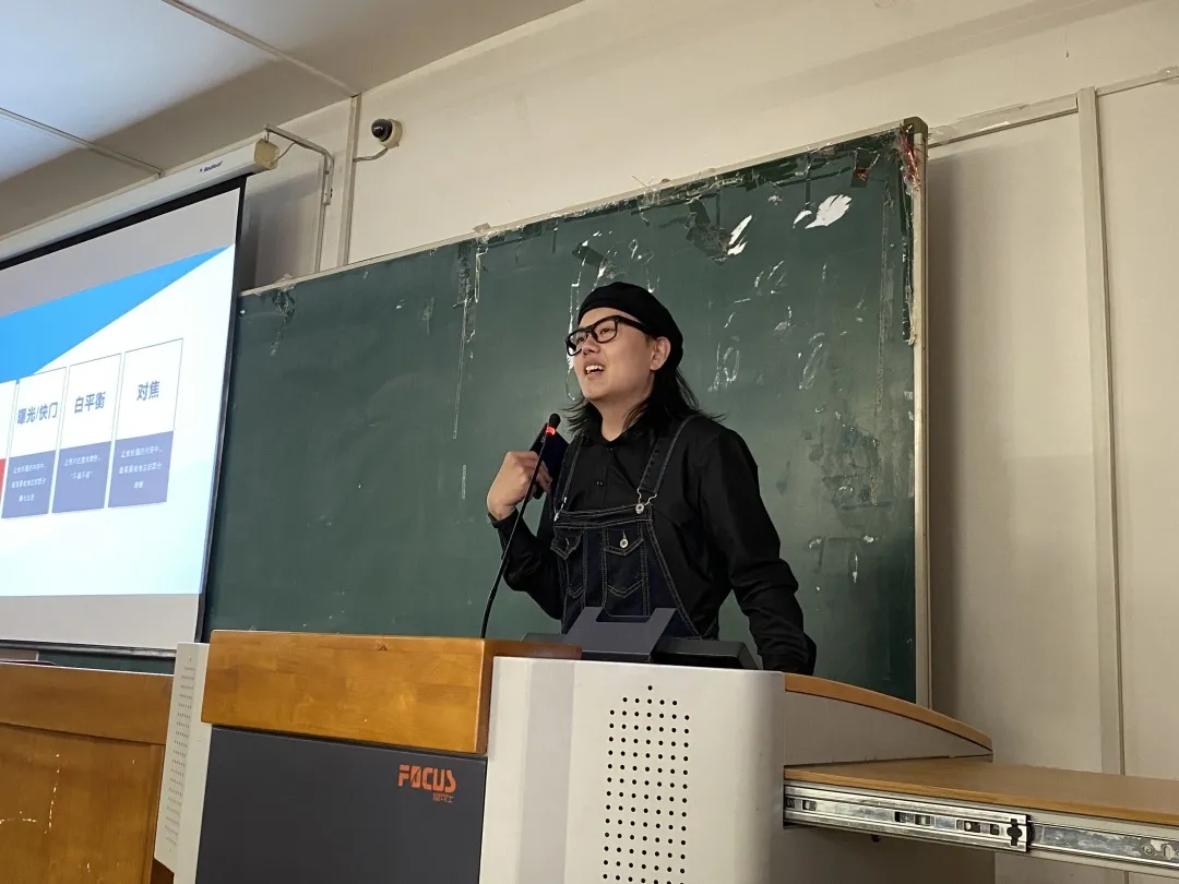 孙晟伟老师从自身成长经历出发,向大家分享了手机摄影、图片编辑和视频编辑以及新媒体运营的经验。他首先从手机摄影提升方面入手,针对像素、快门、白平衡、对焦四个部分进行耐心讲解,并带领大家实际操作,让在座的同学们深入了解了摄影技能,感受摄影的魅力。