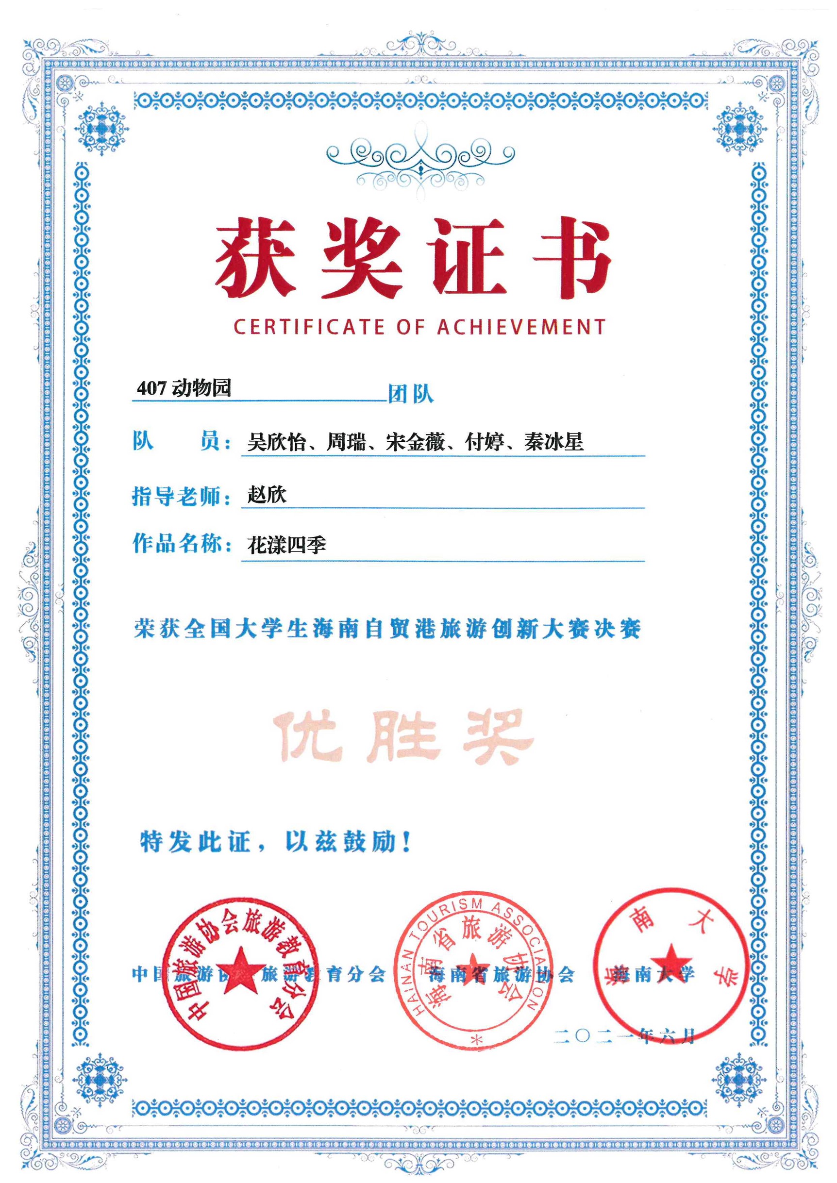 6月5日,“全国大学生海南自贸港旅游创新大赛”全国总决赛在海口市圆满落幕。历史文化旅游学院“407动物园”团队作品“花漾四季”,作为本次大赛“环岛公路组”东北赛区唯一入围决赛作品荣获优胜奖。