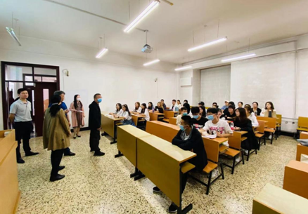 学院领导向任课教师详细了解了课程的开展情况,教学的准备情况,并向教师们了解同学们的返校线下上课的适应情况,并检查开学线下第一课学生的出勤情况、学生上课是否带好书本和无手机课堂执行情况。