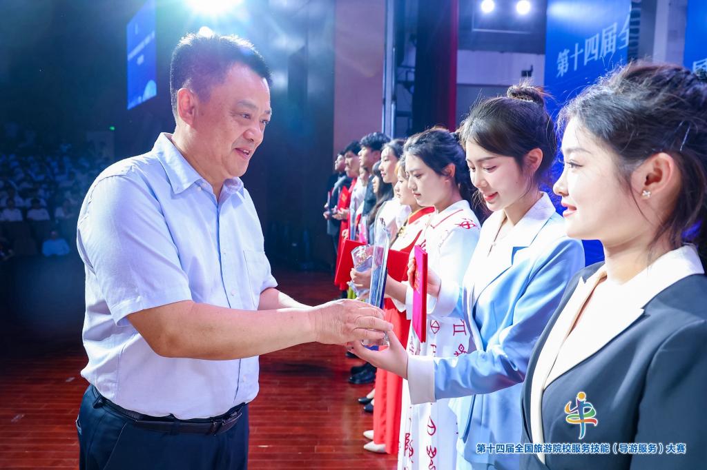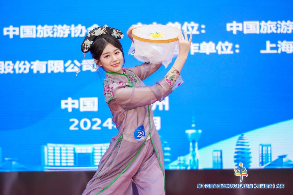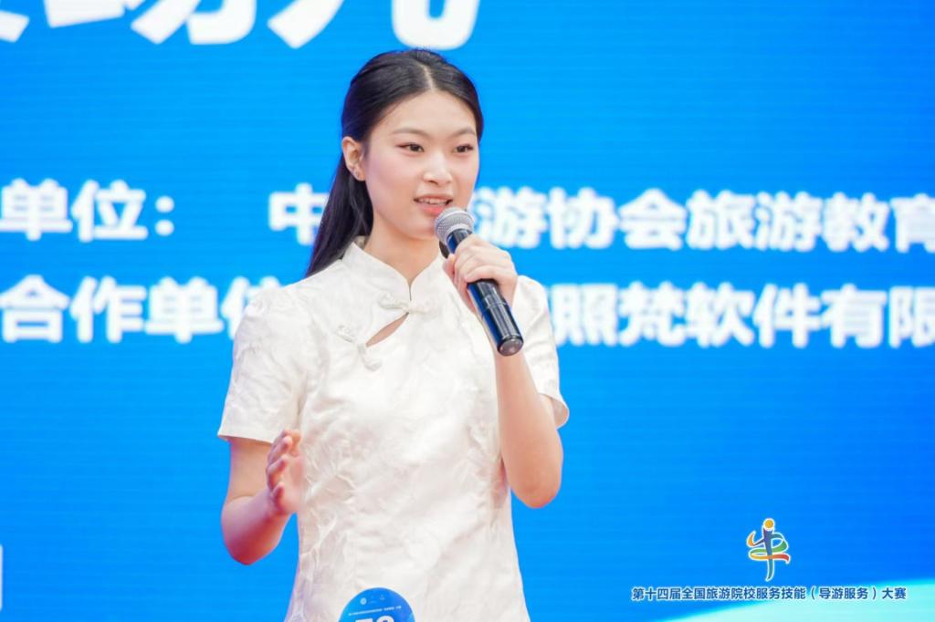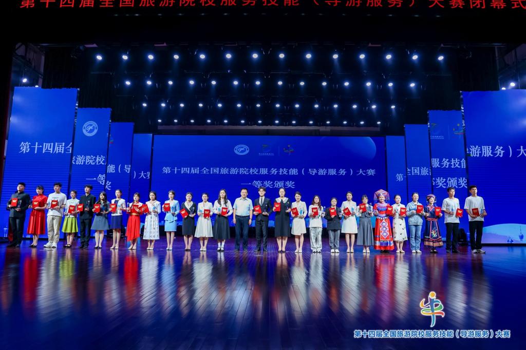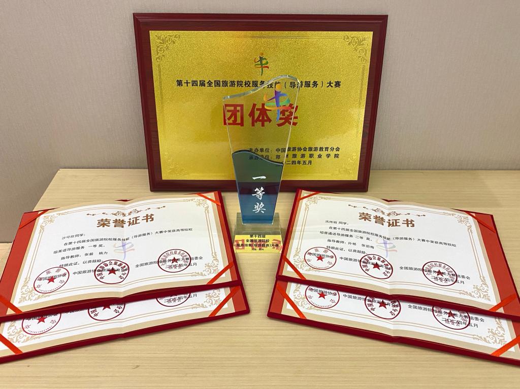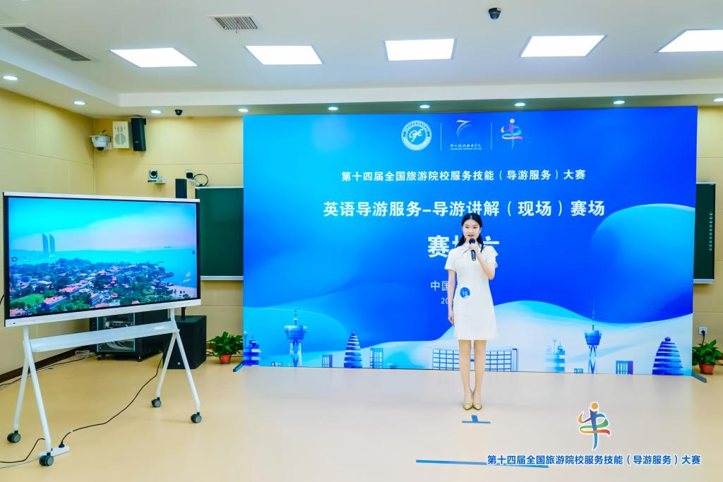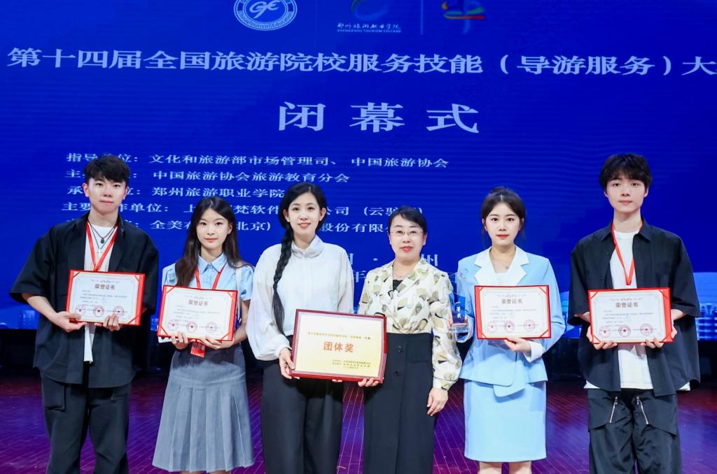 由文化和旅游部市场管理司、中国旅游协会指导,中国旅游协会旅游教育分会主办,郑州旅游职业学院承办的第十四届全国旅游院校服务技能(导游服务)大赛在郑州市落下帷幕。本届大赛共有来自全国30个省、自治区、直辖市303所高等院校的883名选手报名参赛。经过激烈角逐,历史文化旅游学院代表队从众多参赛队伍中脱颖而出,在303支队伍中,以总分350.3分的优异成绩荣获“团体奖”,这也是我院连续四届在全国旅游院校导游服务技能大赛中获得佳绩。本次大赛高等院校组比赛分为普通话和英语导游服务两类,在英语导游服务技能个人赛道中,旅游管理专业沙可欣荣获一等奖、旅游管理专业林雨欣荣获二等奖;在普通话导游服务技能个人赛道中,旅游管理专业冼炜明荣获二等奖、旅游管理专业徐琳凯荣获三等奖。