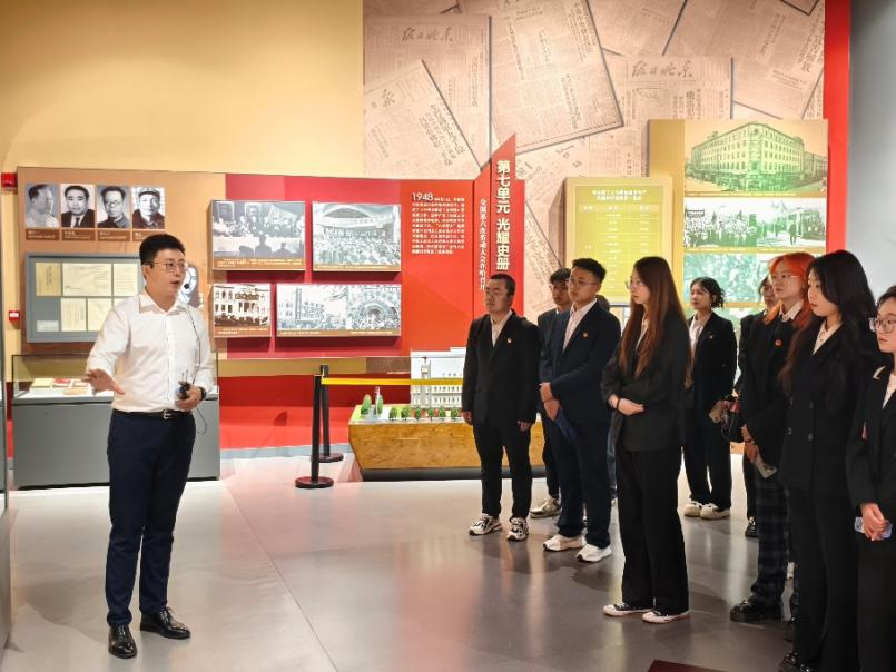 为深入学习贯彻习近平新时代中国特色社会主义思想,引导学生在学思践悟中做到知行合一,2024年6月5日,历史文化旅游学院学生党支部组织入党积极分子和青年团员前往哈尔滨工运历史展览馆开展情景研学。