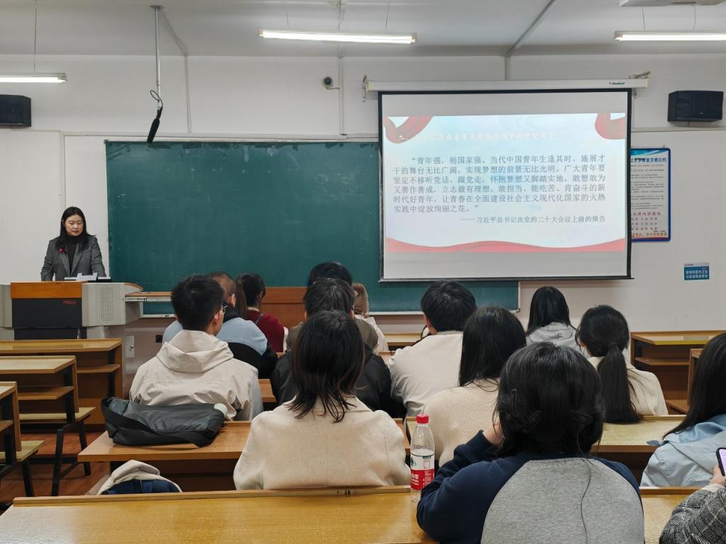 随后,张老师总结概括了习近平总书记对青年的期望和要求。一是志存高远、坚定信念,做有理想的新时代青年;二是勤学敏行、德才兼备,做有本领的新时代青年;三是投身实践、服务社会,做有担当的新时代青年;四是创新创业、勇于开拓,做有力量的新时代青年。同时,团员青年要在生活、工作、学风建设中发挥先锋模范作用。张老师也希望同学们能够坚定共产主义远大理想和中国特色社会主义共同理想,践行全心全意为人民服务的宗旨,以昂扬的斗志担当起时代赋予青年的使命。