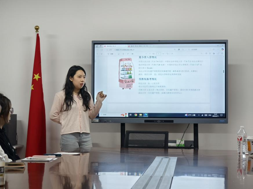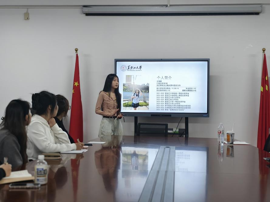 为贯彻落实黑龙江大学关于加强学风建设的工作要求,充分发挥优秀毕业生的榜样引领作用,历史文化旅游学院于2025年4月11日在汇文楼723会议室召开推免经验分享交流会。本次分享会由2022级辅导员孙卓楠主持,2021级学生董浩然、王雪晴、张晗主讲,部分2026届毕业生参加。