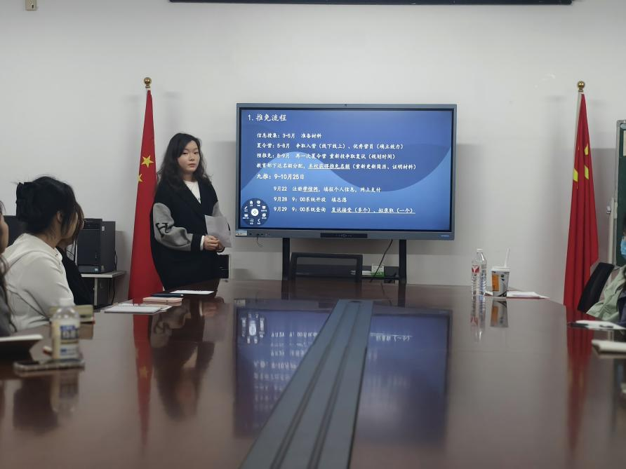三位来自学院不同专业的推免生就学习科研、实践竞赛和推免流程等方面进行经验分享。董浩然同学结合自身经历,详细介绍了参加夏令营和复试环节的基本问题,她建议同学们理清推免时间线,积极收集历届推免去向、推免政策及面试要求等信息,做好参加各校夏令营的时间规划,同时扎实专业基础知识的学习,重视英语四六级成绩,提高“核心竞争力”。王雪晴同学以“时间轴”为主线,详细介绍了推免流程,建议同学们应提早做好择校准备,她特别强调了调整心态的重要性,并分享了自己在这一过程中积累的心得体会。张晗同学从推免流程、夏令营参加情况、面试技巧三个方面进行分享,鼓励同学们积极投递简历,最大化提升自己的投入产出比。与会同学纷纷表示,通过此次交流会受益匪浅,对推免流程有了更直观的了解,更加明晰了今后的努力方向。
