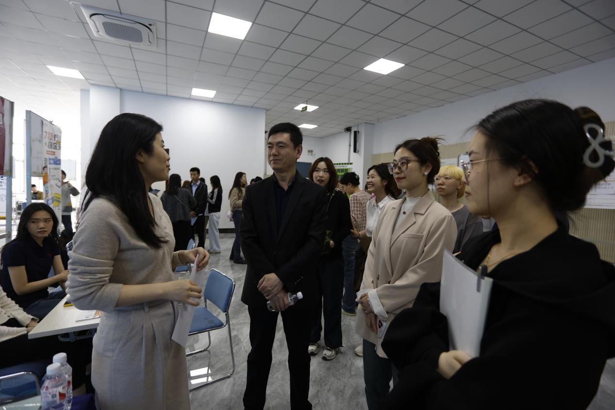 招聘会现场气氛热烈,人头攒动。毕业生们手持简历,穿梭于各企业展位前,积极与招聘人员交流,展现出专业素养与求职热情。学院主管领导与辅导员深入招聘会现场,就人才联合培养机制、课程体系优化路径等议题与用人单位展开多维度、深层次地洽谈交流,了解行业前沿动态与人才需求趋势,为促进校企深度合作奠定了坚实基础。