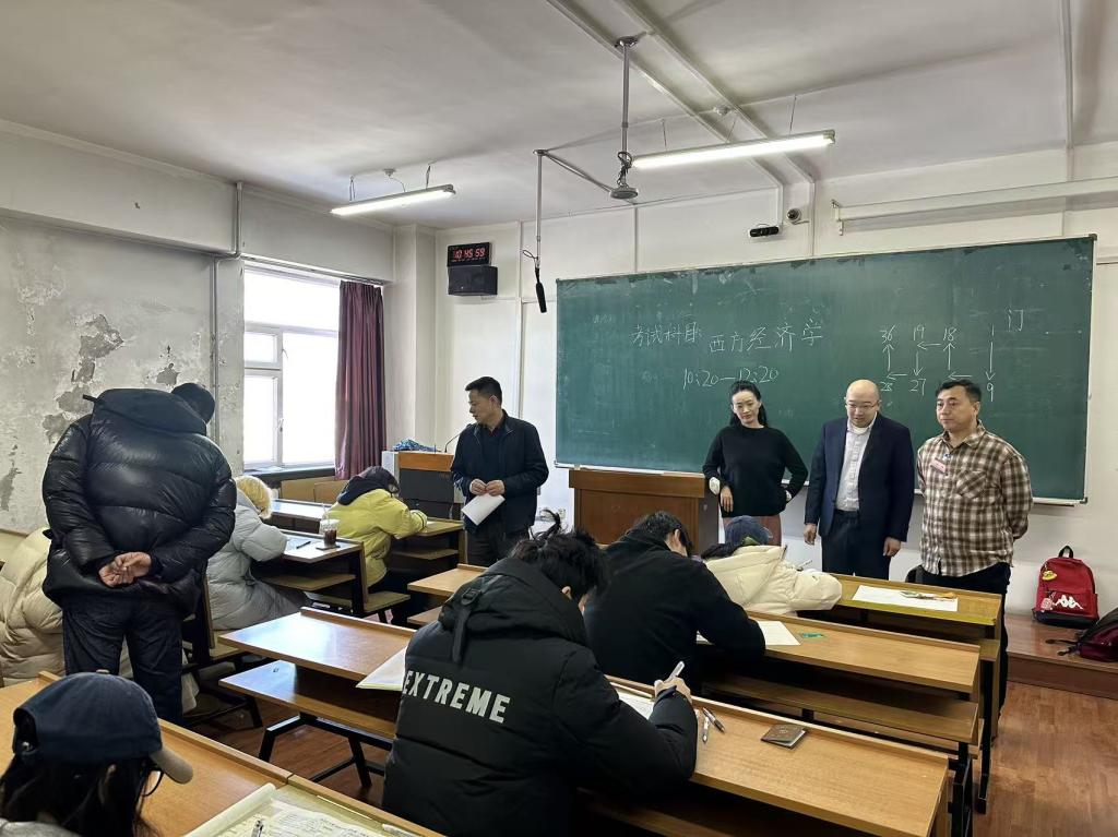 为进一步加强学风考风建设,保障期末考试平稳有序进行,自2025年12月30日起,历史文化旅游学院持续开展期末巡考工作。学院党委书记王法山、正处级辅导员苏兆成、副院长包曙光、副院长綦岩带领教务办公室及全体辅导员深入各考场,对考试组织情况进行全面巡查。