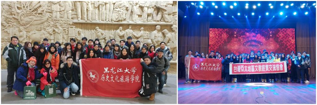 1月25日,由黑龙江省人民政府台湾事务办公室组织的“两岸青年冰雪研习营”如期开营,来自台湾健行科技大学、义守大学的30余名师生作为台湾青年代表参与本次冬令营。历史文化旅游学院2015级历史学专业侯礼明、2016级历史学专业于凤麟和2016级旅游管理专业王心男、谢佳希四名同学作为大陆青年代表共同参与并担任本次冬令营的志愿者。
