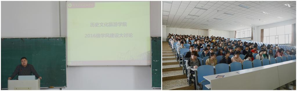 为进一步推进学风建设,引导学生不断端正学习态度,明确学习目标,落实学校学工部下发的《学工部:关于开展“十个一”优良学风创建活动的通知》精神,近日,历史文化旅游学院各年级辅导员老师组织各年级学生分别召开学风建设大讨论主题年级大会。