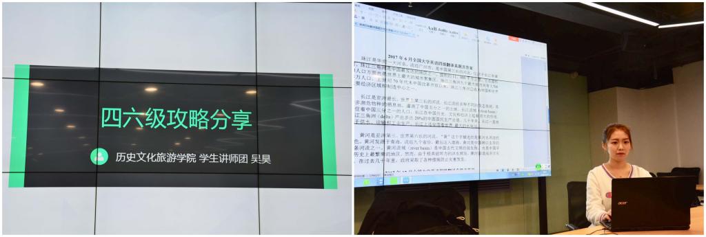 10月21日晚,历史文化旅游学院特色晚自习之学生讲师团——四级备考篇在汇文楼地下创客社区多功能厅正式开讲,学院2016级旅游管理专业吴昊同学担任本次的学生讲师,从考前准备、考试过程和实战演练三个部分为2018级大家带来了四级备考攻略详解。
