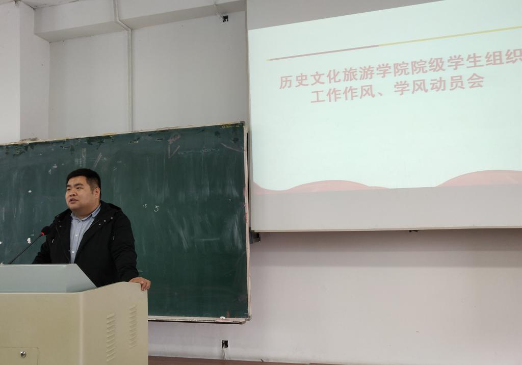 全国教育大会于2018年9月10日在北京召开。为贯彻学习习近平总书记在全国教育大会重要讲话精神,加强团学干部“自我管理、自我教育、自我服务、自我监督”的意识,树立良好形象,历史文化旅游学院于10月29日中午在汇文楼180教室召开全国教育大会讲话精神学习会议暨团学干部作风、学风动员会。学院团委书记杨淦、团委副书记曹梦瑶、学生团委副书记冯熙、赵鑫宇以及学院团委、学生会、青年志愿者协会、二级心理辅导站、易班工作站全体成员参加会议。