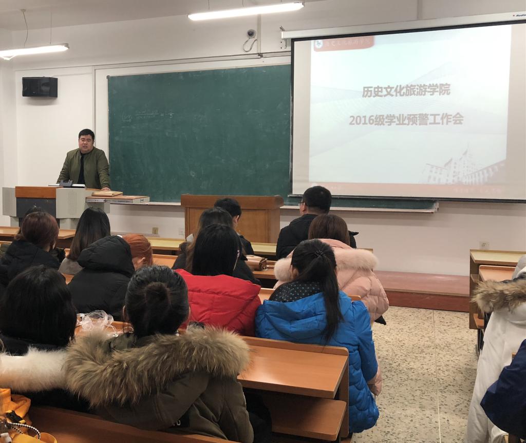 为进一步加强学风建设,端正学生学习态度,明确学业预警学生学习状况和学业进度,历史文化旅游学院于11月25日在汇文楼441教室召开2016级学业预警大会,会议由2016级辅导员曹梦瑶老师主持,2016级学业预警学生参加会议。