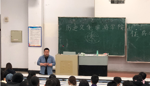 为积极配合国家大学生征兵工作的开展,加强征政策宣传,做好本年度大学生入伍工作。5月26日,历史文化旅游学院于汇文楼220教室召开征兵动员宣讲会。宣讲会会由学院2016级、2018级辅导员曹梦瑶老师主持,学院团委张斯博老师和在校全体男同学和感兴趣的女同学参加本次动员会。