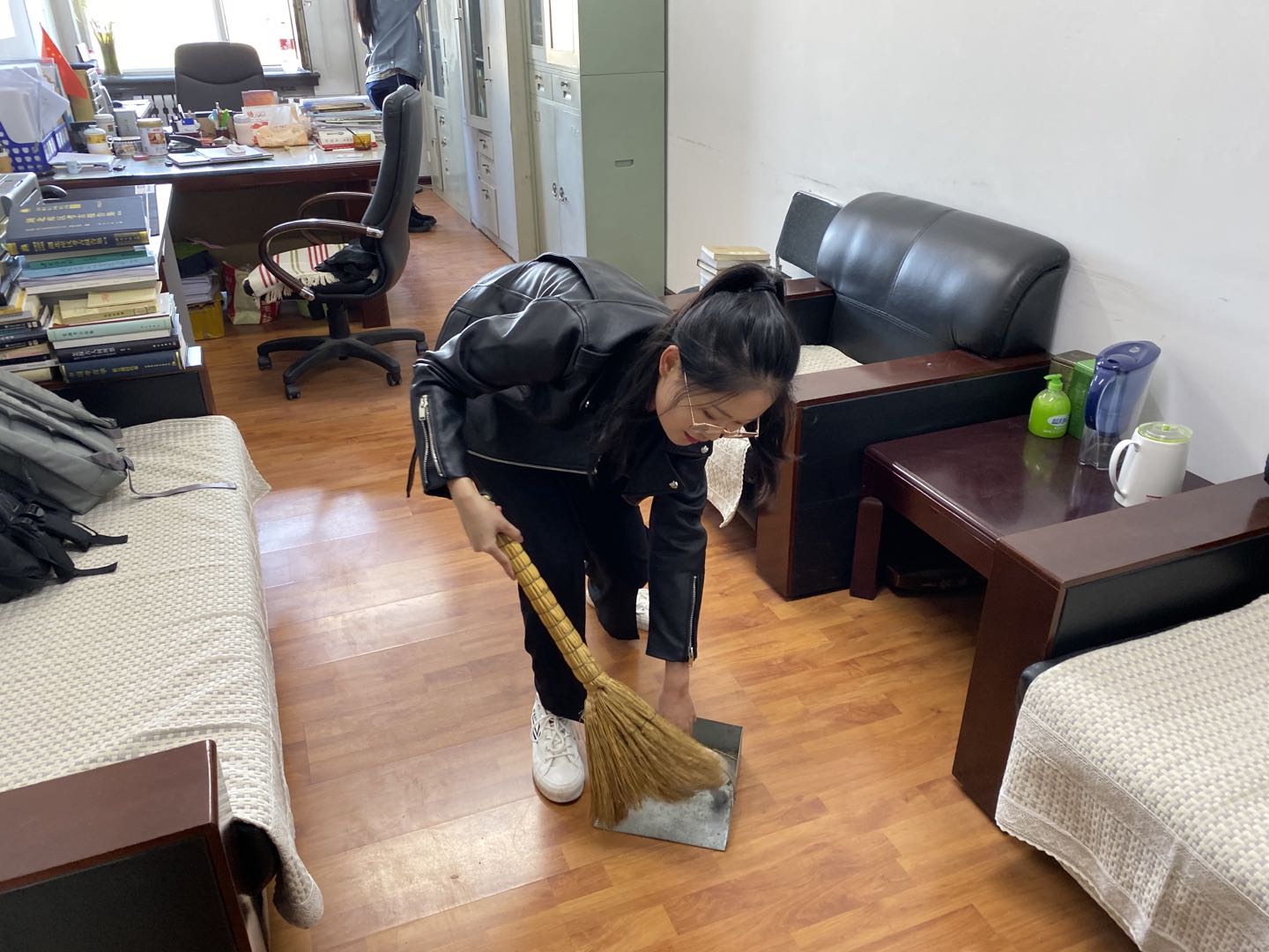 首先,杨老师向全体学生党员介绍本次志愿清扫的范围及注意事项。随后,学生党员分组对学院会议室、职工之家等办公区进行了卫生清扫,积极为学院师生办实事好事。党员志愿者深入学院各个办公区,擦拭窗户,清扫地面和桌椅的灰尘。每一次弯腰,每一滴汗水都传递着奉献、友爱、互助、进步的志愿服务精神和不计代价、不计得失、爱校如家的感恩情怀。
