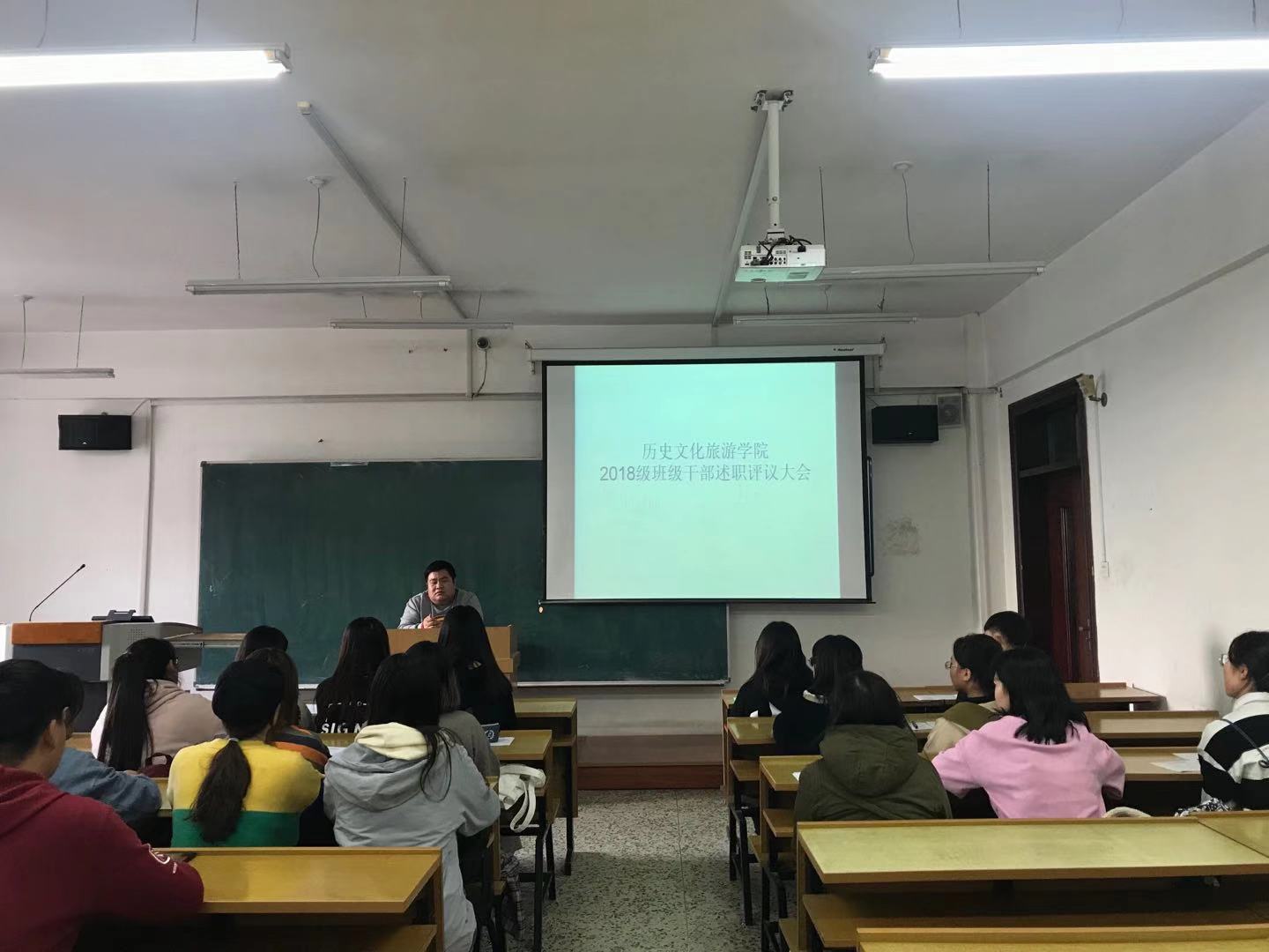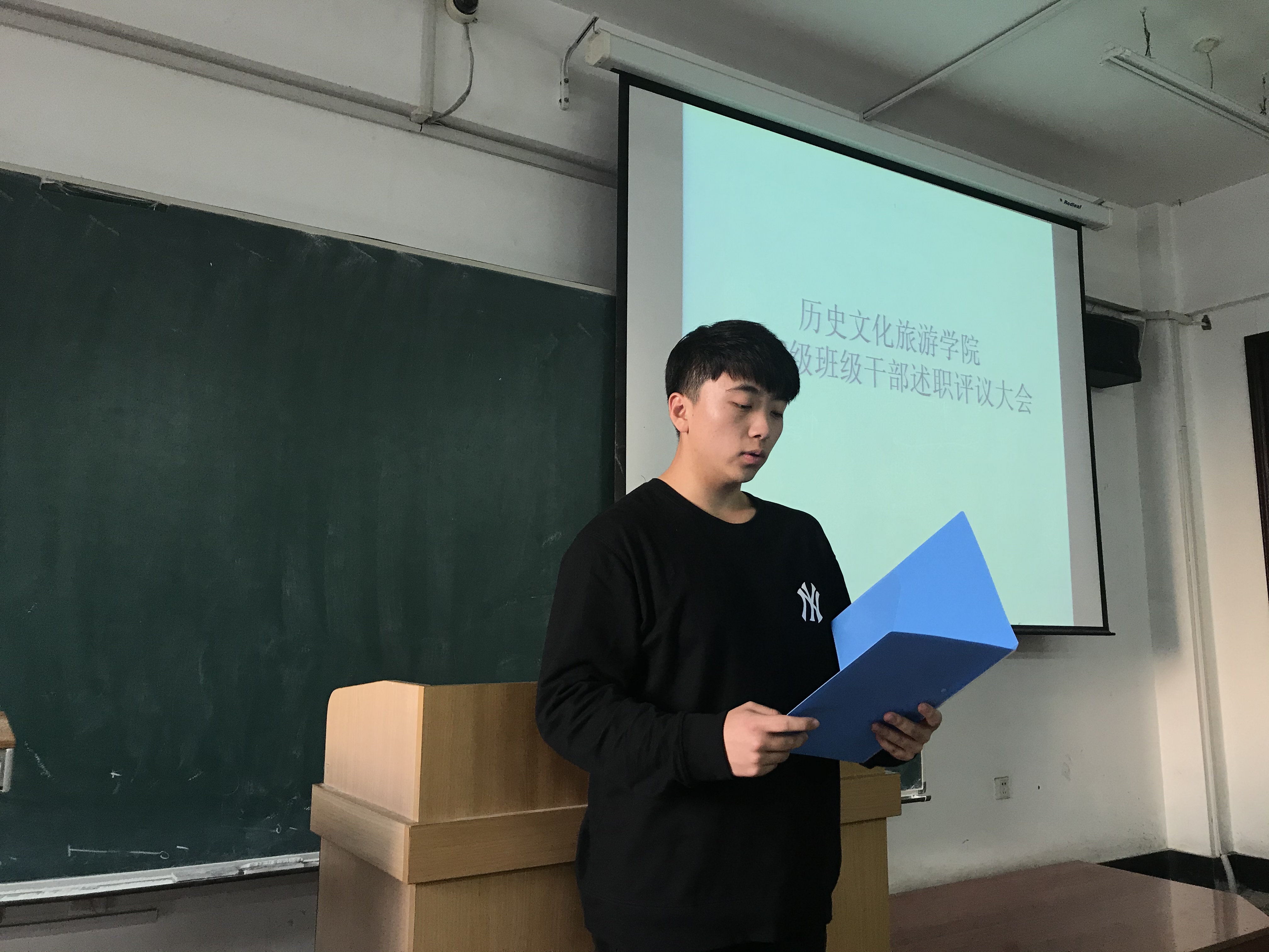 为进一步加强班级干部队伍建设,提升班级干部的思想认识与工作能力,总结成绩,反思不足,更好地开展今后的工作,历史文化旅游学院于10月17日—18日以班级为单位召开班级干部述职评议会。辅导员曹梦瑶老师主持各班会议。