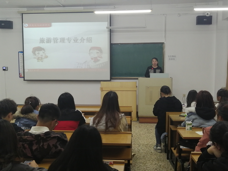 为了加强我院学风建设,营造浓厚的学习氛围,密切师生关系,激发同学对学习的热情,加强同学对专业的认知。历史文化旅游学院于10月28日晚20时,在3号教学楼524教室开展了旅游管理专业认知讲座。本次讲座主讲人为历史文化旅游学院张丽梅老师。2019级旅游管理专业全体同学参加此次讲座。