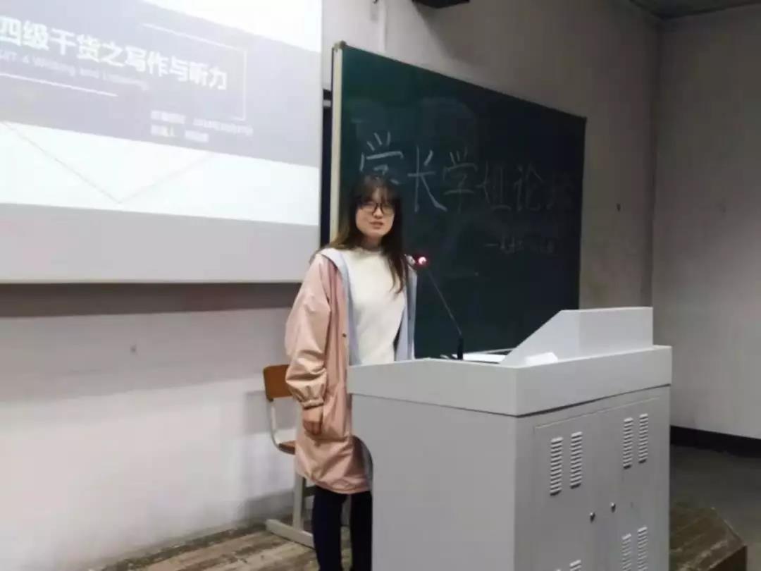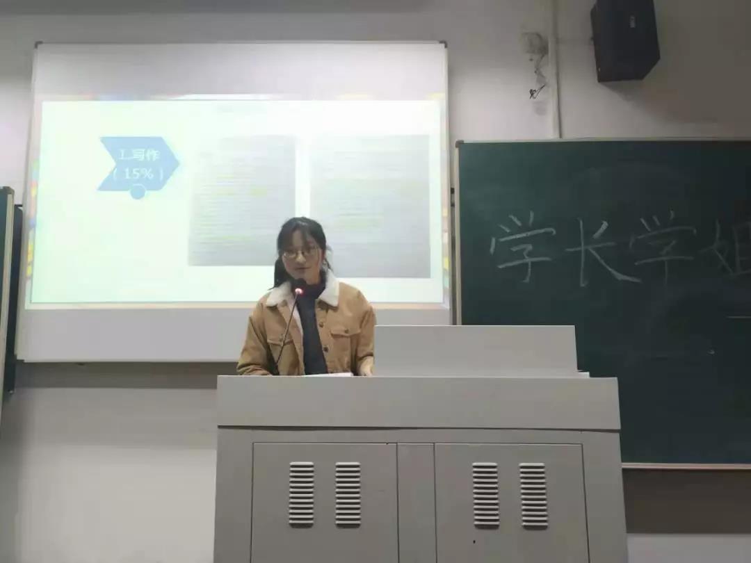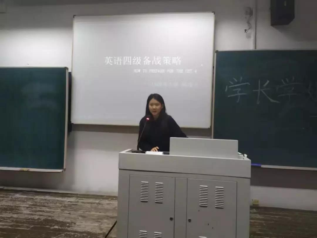 来自2017级的修程辉、钟慕雪,2018级的王玥、杨逸飞四位同学为新生们分享了自己学习英语的宝贵经验和学习方法。修程辉同学重点强调了英语口语的重要性,鼓励大家要态度端正,有开口的勇气,拒绝模板,多使用高级词汇和句式,多听多练,感受英语口语的发音和语法。王玥同学主要讲解的是阅读理解和翻译部分。她建议大家要学会局部精读,谨慎选择全篇精读,以节省答题时间,提高正确率。杨逸飞同学系统阐述了英语四六级考前的准备工作,并推荐了有助于英语学习的APP,并告诉大家如何进行专项练习。最后,钟慕雪同学从考试做题的顺序出发,将自己既保证正确率又合理的分配时间的经验分享给学弟学妹们。