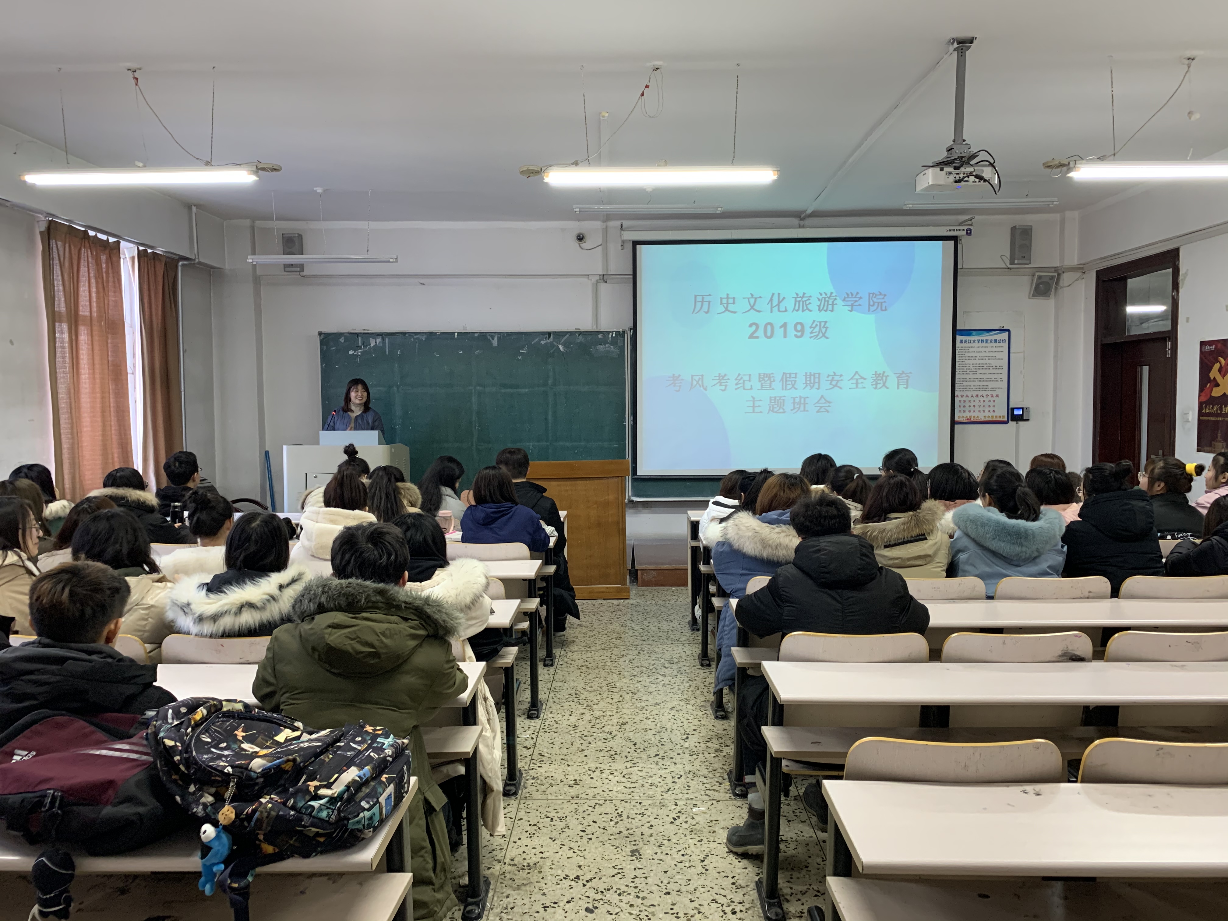 期末考试的到来意味着假期的临近。各位辅导员老师希望同学们放假回家与家人度过一个美好的假期,欢度一个团圆的春节,多陪伴家人,帮助家人做些力所能及的事情,以尽孝心。在家或往返途中,一定要提高警惕,注意各方面安全,保护自己。各位辅导员老师再次强调了寝室卫生安全问题,保持寝室整洁、卫生,防治传染病的发生;严禁存放、使用违禁电器;保管好自己的财务,做到人走断电,人走锁门。