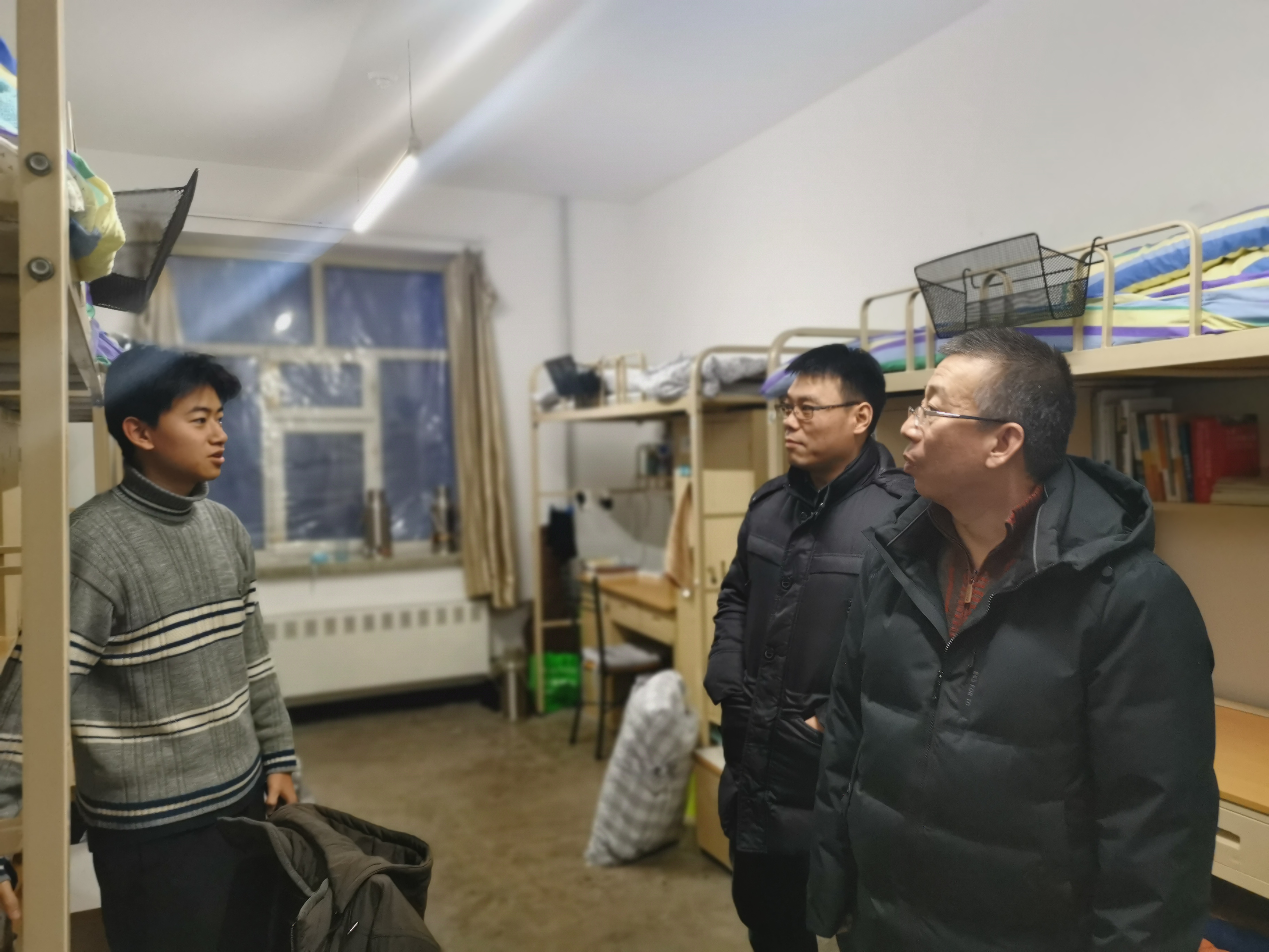每到一个寝室,学院领导老师亲切地询问学生回家的时间、方式,了解学生期末考试成绩,鼓励大家胜不骄,败不馁,理性看待生活、学习中的每一件事,用一段段难忘的经历去装点青春。