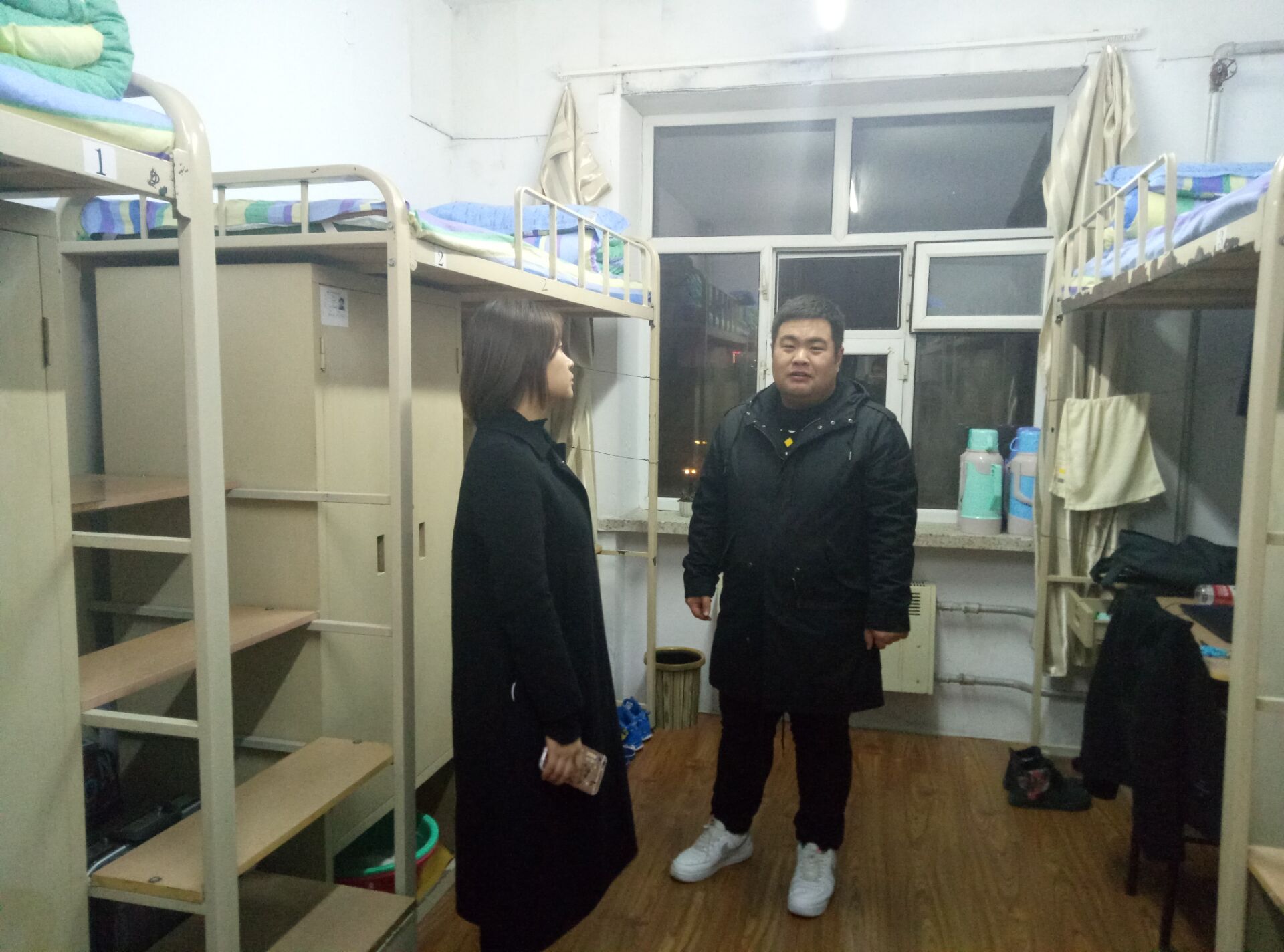 为了解学生日常状态,强化安全意识和卫生意识,2020年1月6日,历史文化旅游学院党委书记赵恩忠、副院长王乐文与学院辅导员杨淦、曹梦瑶、张斯博到学生寝室进行走访,并进行寝室用电安全检查。