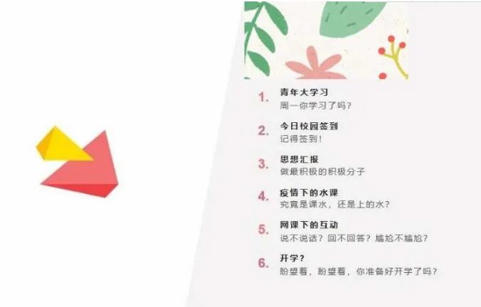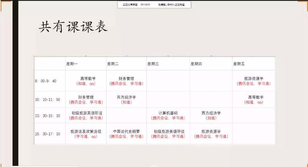 其次,班级班长和学习委员共同征求班级同学对线上教学的意见、建议。经过几天的线上学习,不少同学发表了自己对线上教学的感受。同学们表示,线上教学受客观因素影响较大,比如网络故障或者是软件本身的功能欠缺而导致使用欠佳,从而出现了和老师交流、互动性差等问题。这种方式更加考验的是同学们的学习自觉性,因此要主动调整心态,主动适应。也有同学表示,线上教学从某种程度上有利于培养良好学习习惯、提高学习效率。