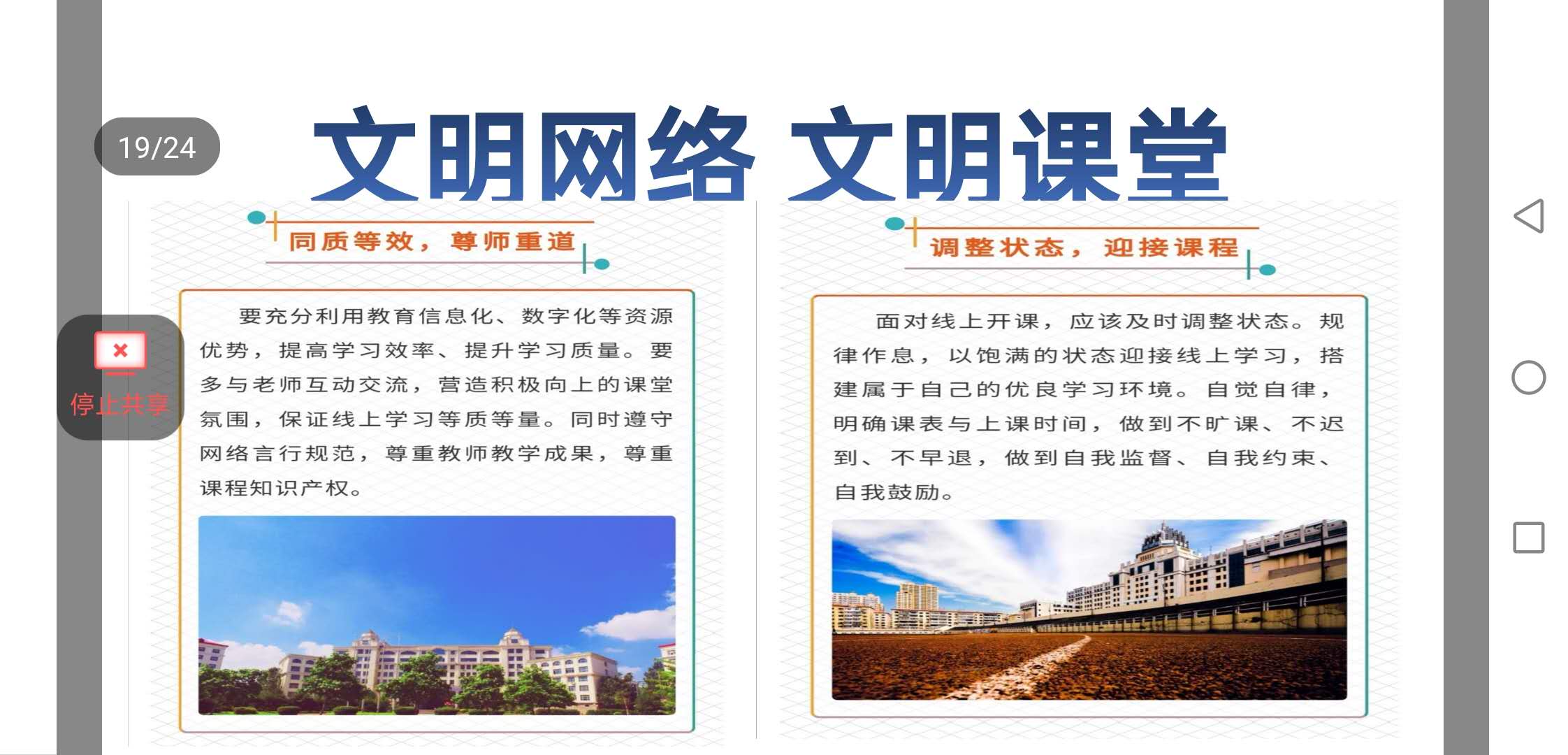 首先,班级学习委员再次强调了各门课程线上教学的方式和途径,明确任课教师的要求,提醒同学们按时上课,认真听讲,并组织班级同学开展共建网络文明课堂讨论,最终形成班级网络课堂文明公约。由班长带头,学习委员为代表共同宣读公约,全班同学共同表示自觉遵守公约。