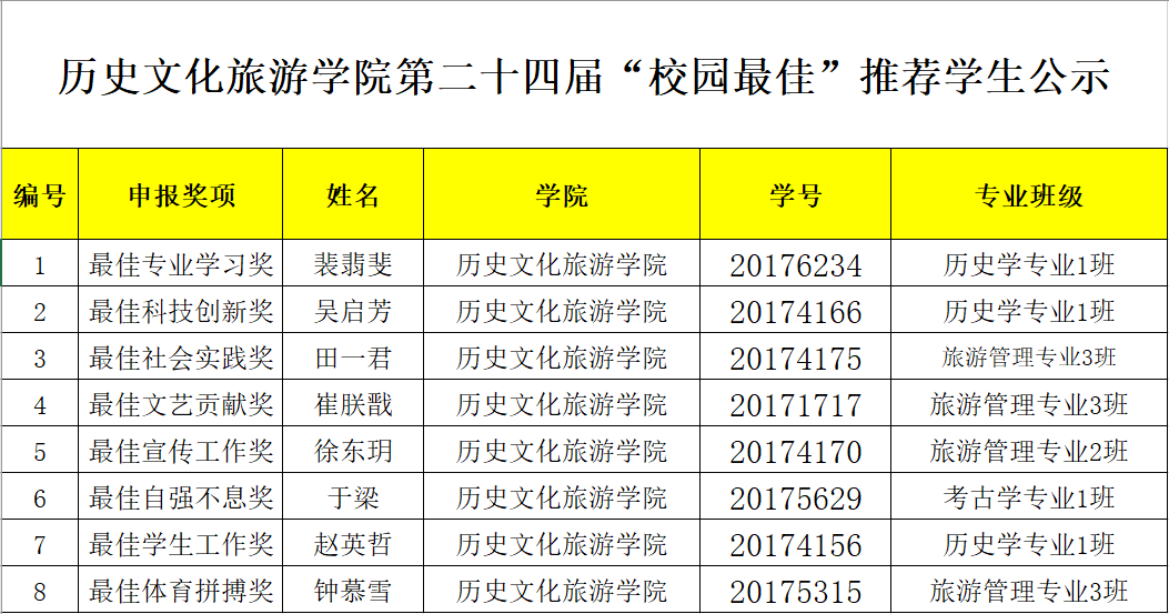 公示期自2020年4月10日至4月12日。如有异议,请与历史文化旅游学院团委联系,电话:86608246。