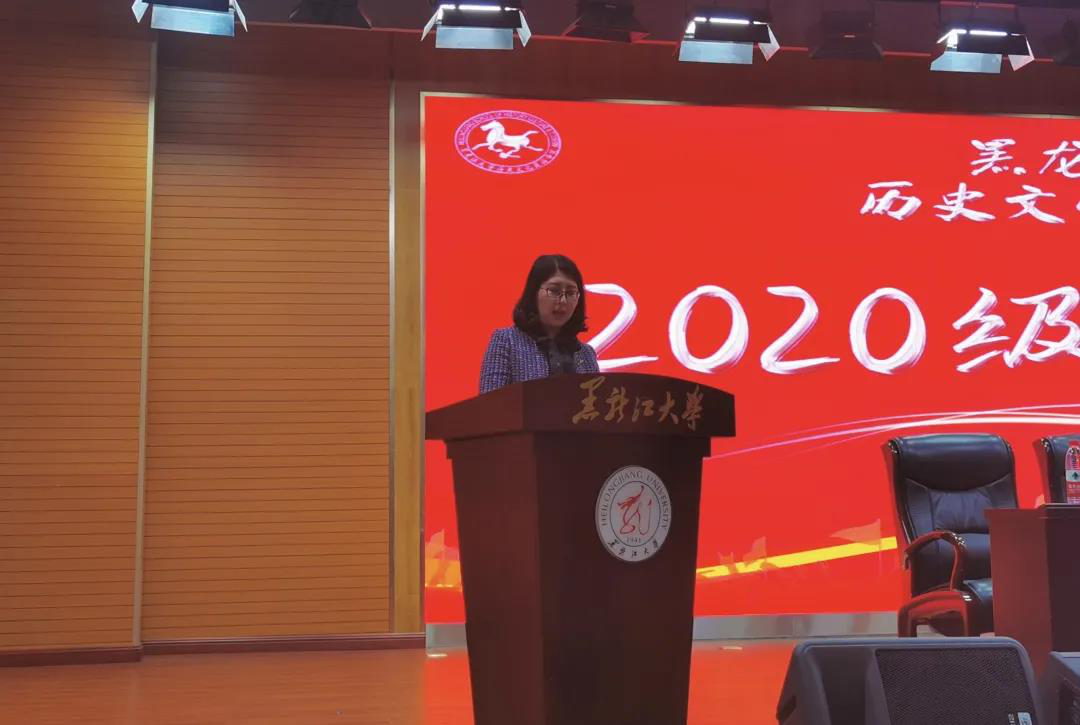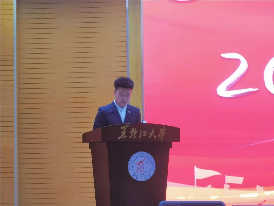 紧接着,学院第37届学生会主席、2018级历史学专业学生纪彭译作为在校生代表发言。他代表学院全体学生向2020级新同学表示欢迎,希望同学们认真学习专业知识,积极参加校园文化活动,将抗大传统与延安精神内化于心、外化于行,谨承“博学慎思,参天尽物”之校训,刻苦努力、不懈奋斗。接下来由2020级新生代表旅游管理专业学生刘奕含发言,他提出了对大学生活的展望,并表示会在黑大精神的引领下努力学习,期待与全体新生共同进步、共同成长。
