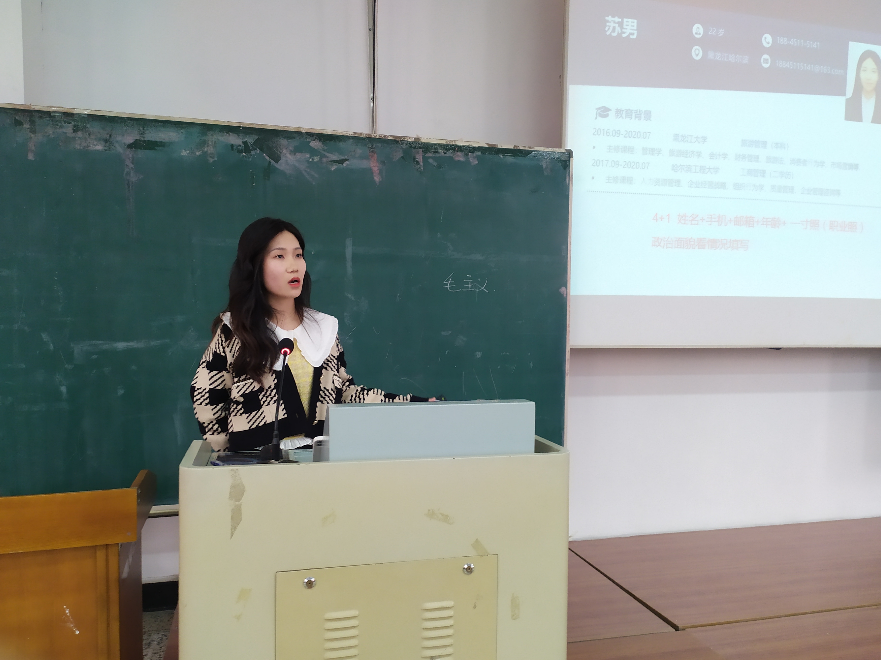 4月21日,历史文化旅游学院在汇文楼120教室举办职场经验分享会。本次分享会邀请到的主讲人是2020届旅游管理专业毕业生苏男,分享会由2018级辅导员曹梦瑶老师主持。苏男目前就职于哈尔滨银行,曾任历史文化旅游学院2016级旅游管理专业3班团支部书记、学院第35届学生会副秘书长。