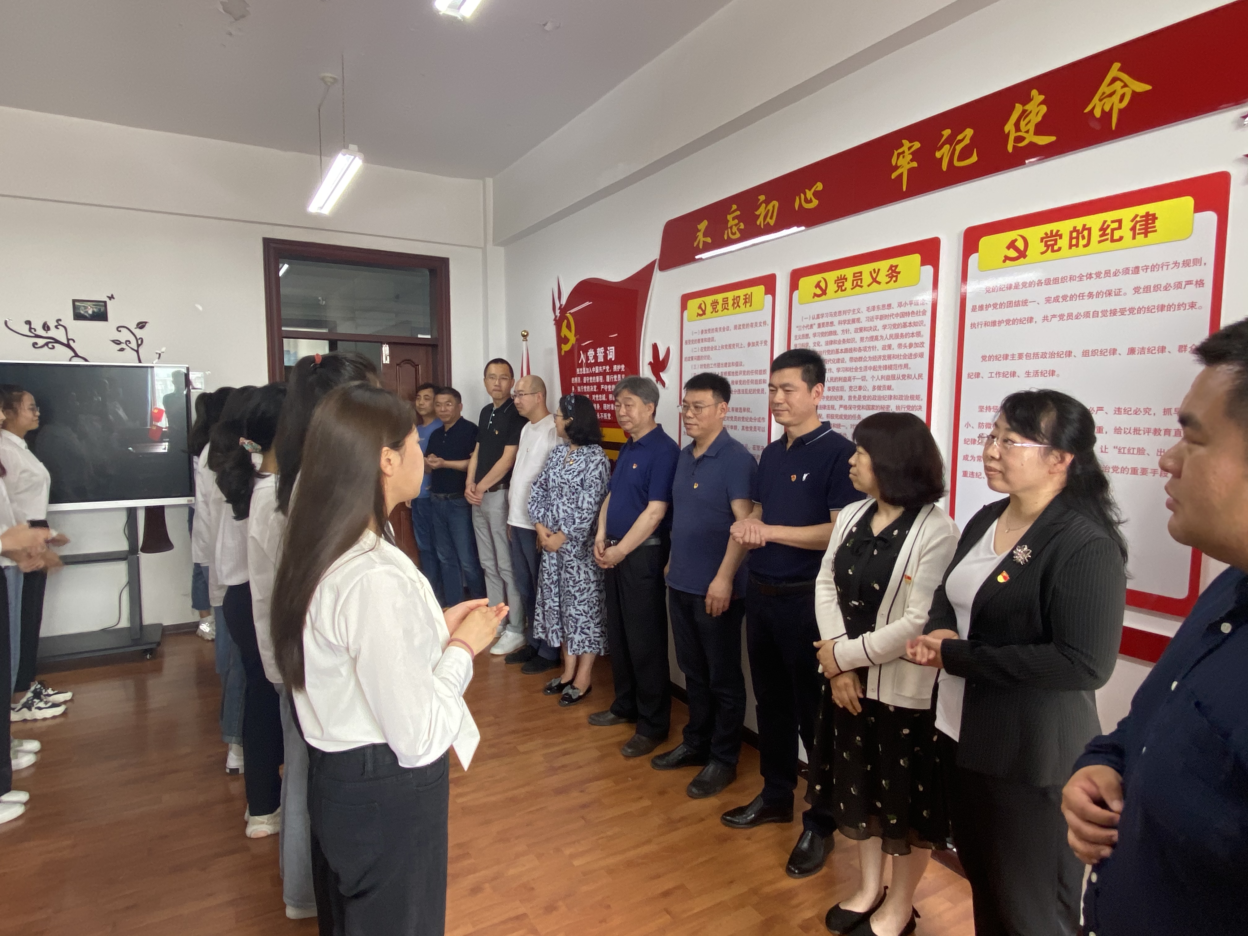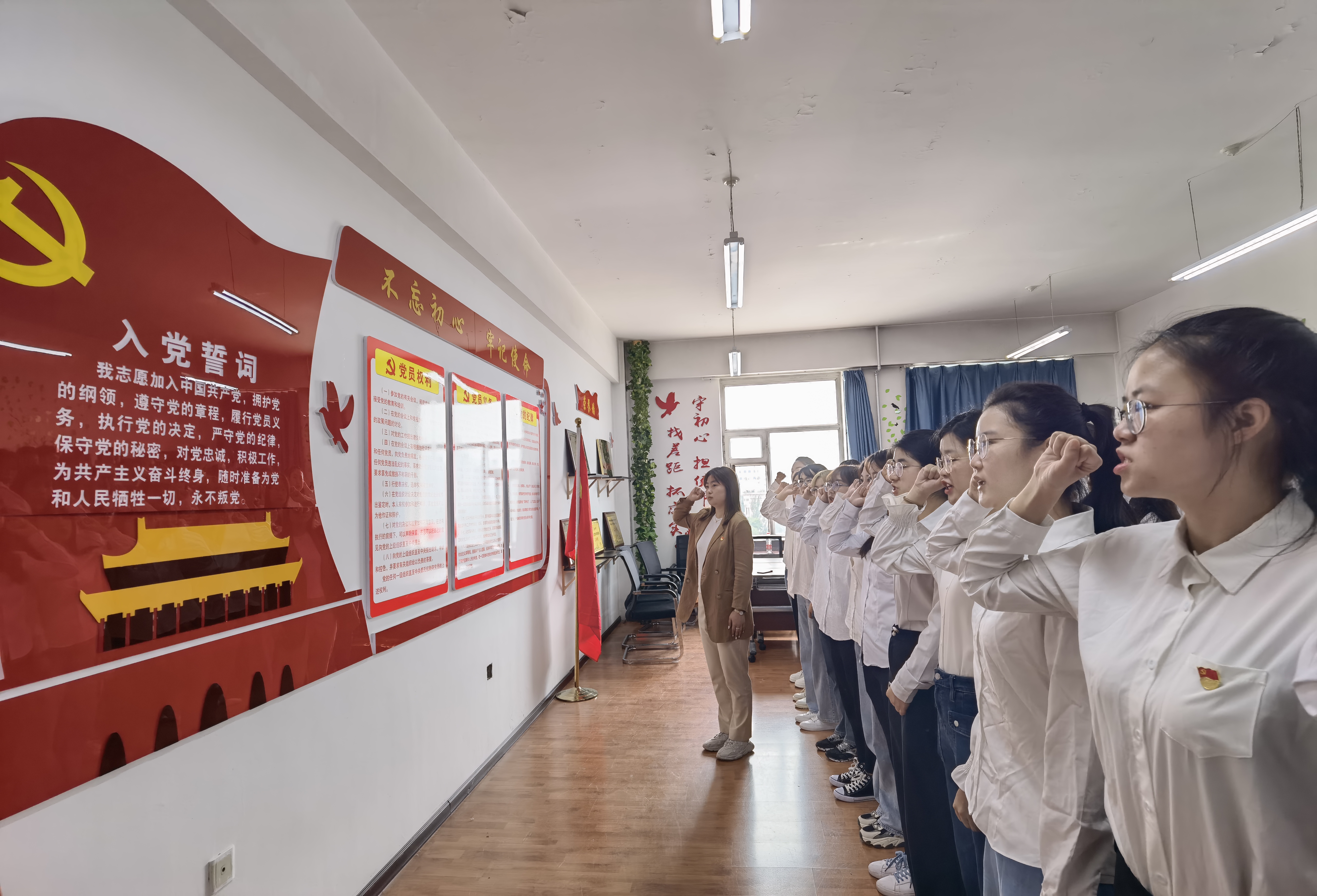 仪式上,曹梦瑶老师简要说明了举办本次入党仪式的目的和意义,希望各位新发展党员能够进一步认清楚加入党组织的重要意义,在本次仪式中更加体会到加入党组织的仪式感和使命感。在张斯博老师的带领下,新发展党员进行入党宣誓,表达出对党和人民的忠诚与决心,再一次接受思想洗礼。