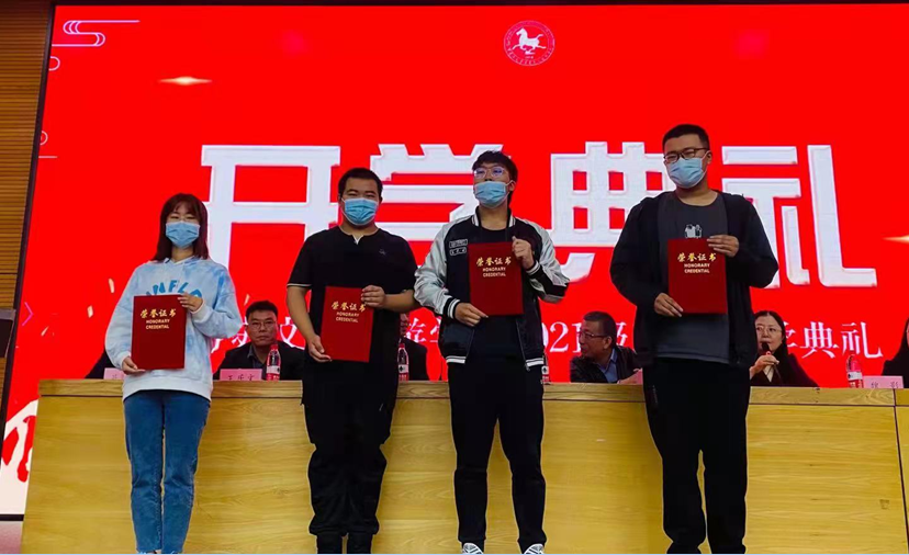 党委副书记周丽波老师宣布了关于表彰张硕等四名优秀新生的决定,决定授予张硕等四名同学新生奖学金。旅游管理专业系主任张丽梅老师和历史学专业系主任綦岩老师为四名优秀新生颁发荣誉证书,以此鼓励全体新同学在大学中珍惜时光,不负韶华。