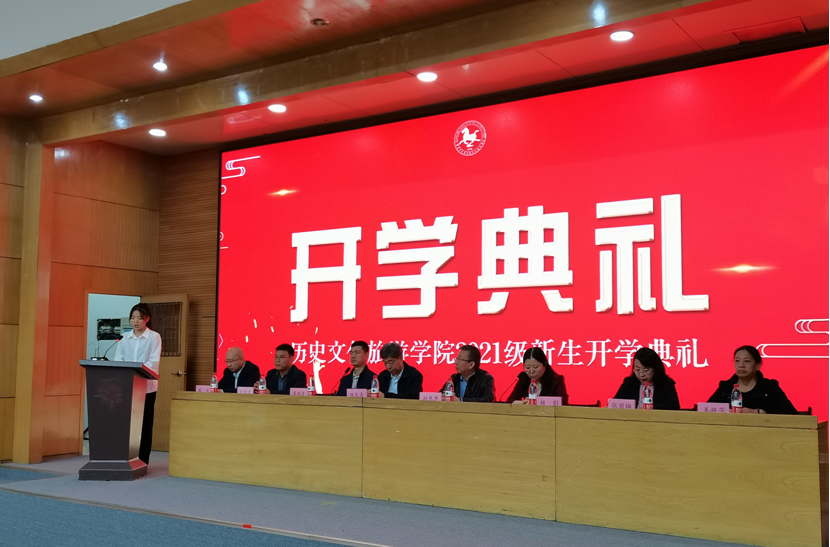 典礼伊始,副院长魏影老师宣布历史文化旅游学院2021级新生开学典礼暨院庆志愿者授旗仪式正式开始,全体起立奏唱国歌。