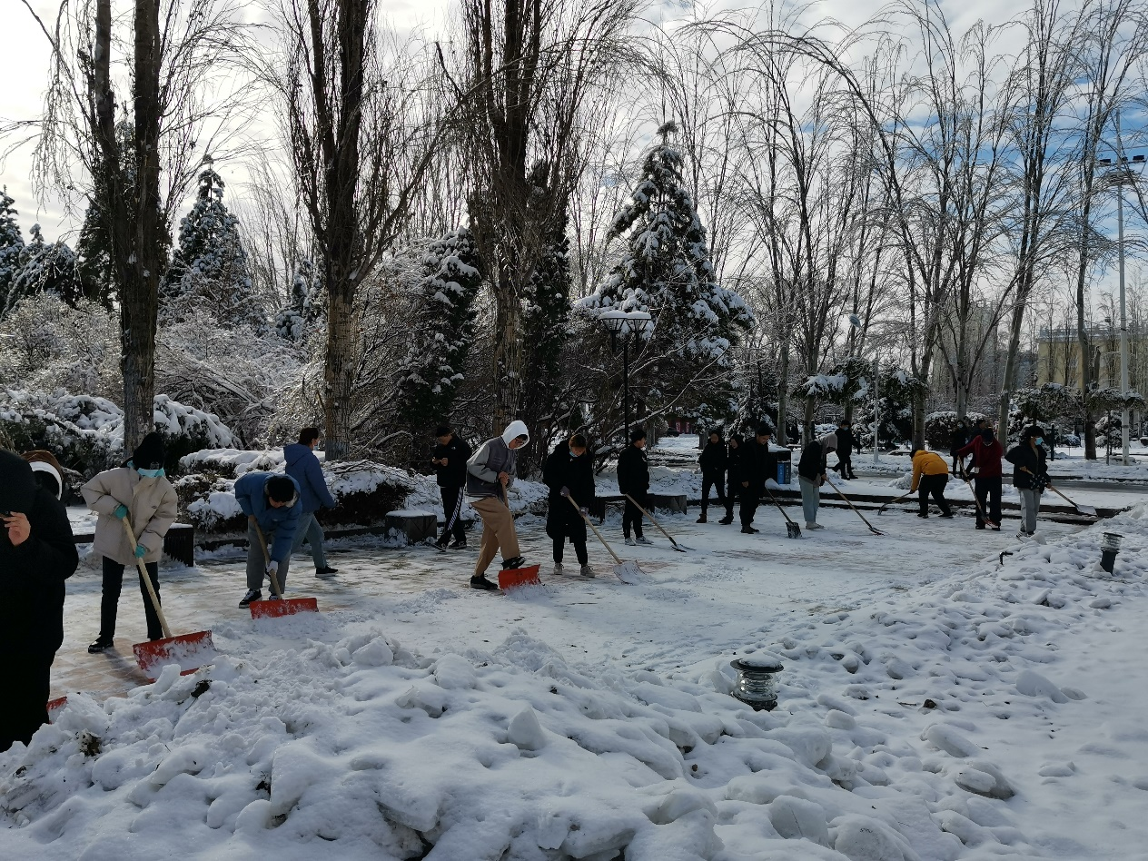 本次扫雪活动不仅将校园内路面上的积雪清理干净,方便师生出行,而且培养了同学们顽强拼搏和无私奉献的坚毅品质,提高了动手能力和团队意识。希望同学们在今后继续保持坚韧不拔和攻坚克难的意志,将这种品质与精神继续传承下去。(历史文化旅游学院供稿)