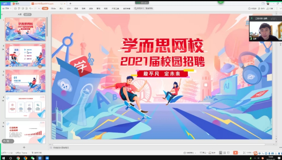 1月27日10:00,学而思网校长春分校通过腾讯会议为我院2021届毕业生召开专场招聘宣讲会,主要招聘岗位为网校讲师。