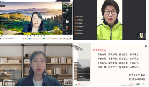 为进一步丰富同学们的校园生活,在落实疫情防控要求前提下帮助同学们调整心理状态,历史文化旅游学院于4月16日18:30举办线上文艺晚会,本次文艺晚会通过腾讯会议实时播出,历史文化旅游学院各年级同学在线观看。