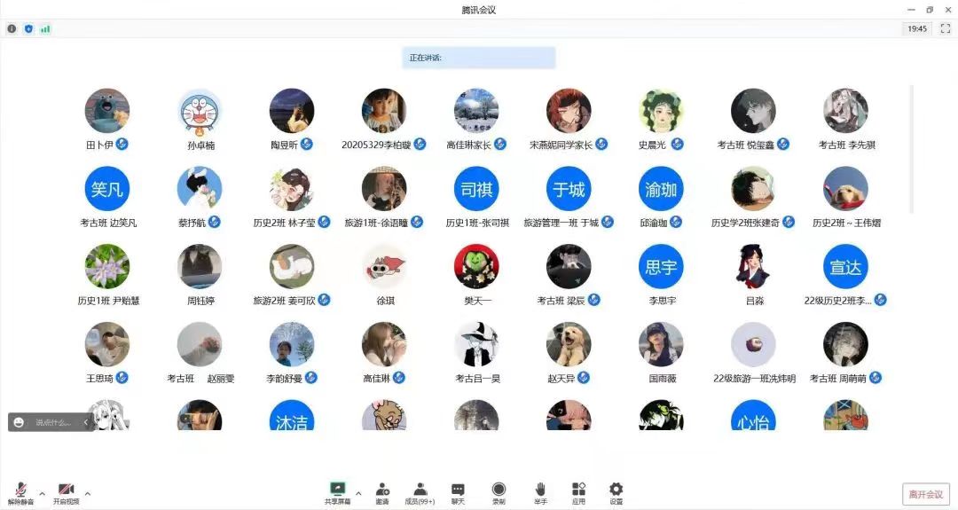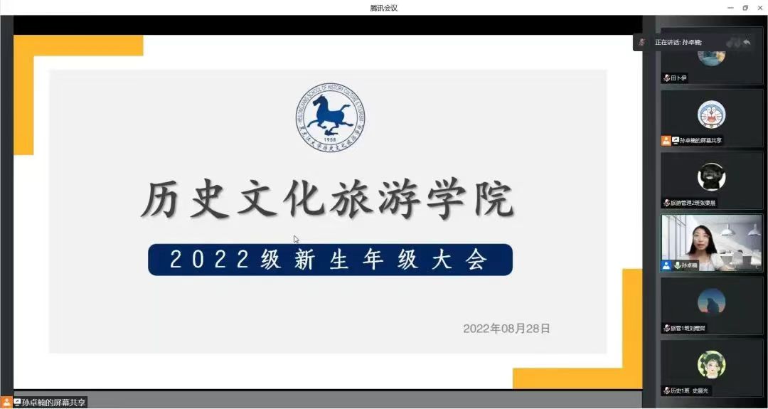 为帮助新生更好地了解学校及学院概况,适应大学生活,明确学校的规章制度及入学报到安排,历史文化旅游学院于2022年8月28日17:30在腾讯会议召开2022级新生年级大会。本次会议由2022级辅导员孙卓楠老师主持,2022级新生班主任及全体同学参加。