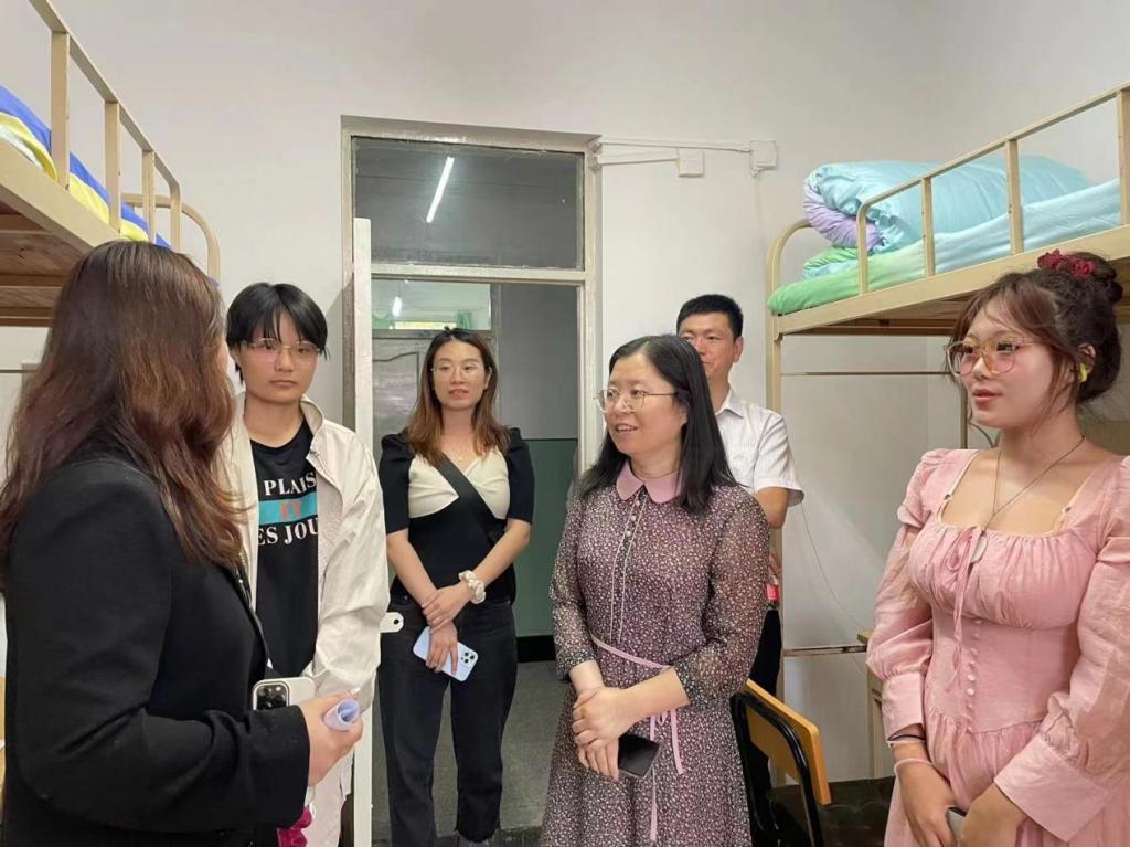 为进一步了解历史文化旅游学院新生入学情况,帮助2023级新生尽快适应陌生的大学校园生活,9月10日下午,历史文化旅游学院党委书记赵恩忠、院长魏影、党委副书记周丽波、副院长王乐文带领全体辅导员走访新生寝室。