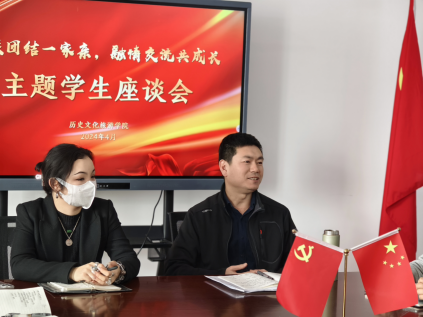 为深入学习贯彻党的二十大精神,深化民族团结进步教育,铸牢中华民族共同体意识,推动总体国家安全观深入人心,历史文化旅游学院于4月10日召开“民族团结一家亲,融情交流共成长”主题座谈会暨国家安全知识集体学习会。历史文化旅游学院党委副书记周丽波、学生工作部少数民族专职辅导员阿胡、2023级辅导员张斯博、2020级辅导员赵鑫宇出席座谈会,学院全体少数民族学生参会,本次会议由2022级辅导员孙卓楠主持。