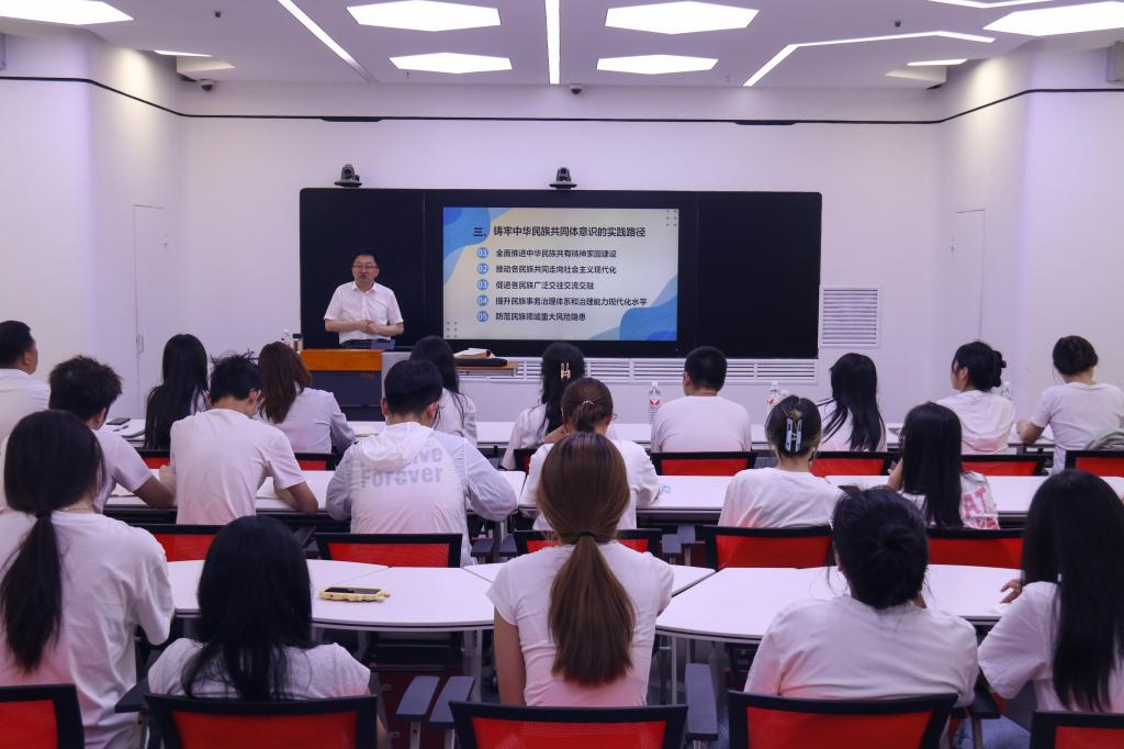 为深入学习贯彻落实习近平总书记关于加强和改进民族工作的重要思想,进一步提升思政课教学质量,发挥思政课铸魂育人作用,引导广大青年学生积极投身中华民族共同体建设,6月28日下午,校党委副书记李君明为历史文化旅游学院2022级历史学1班、2023级历史学1班学生讲授“铸牢中华民族共同体意识”专题思政课。